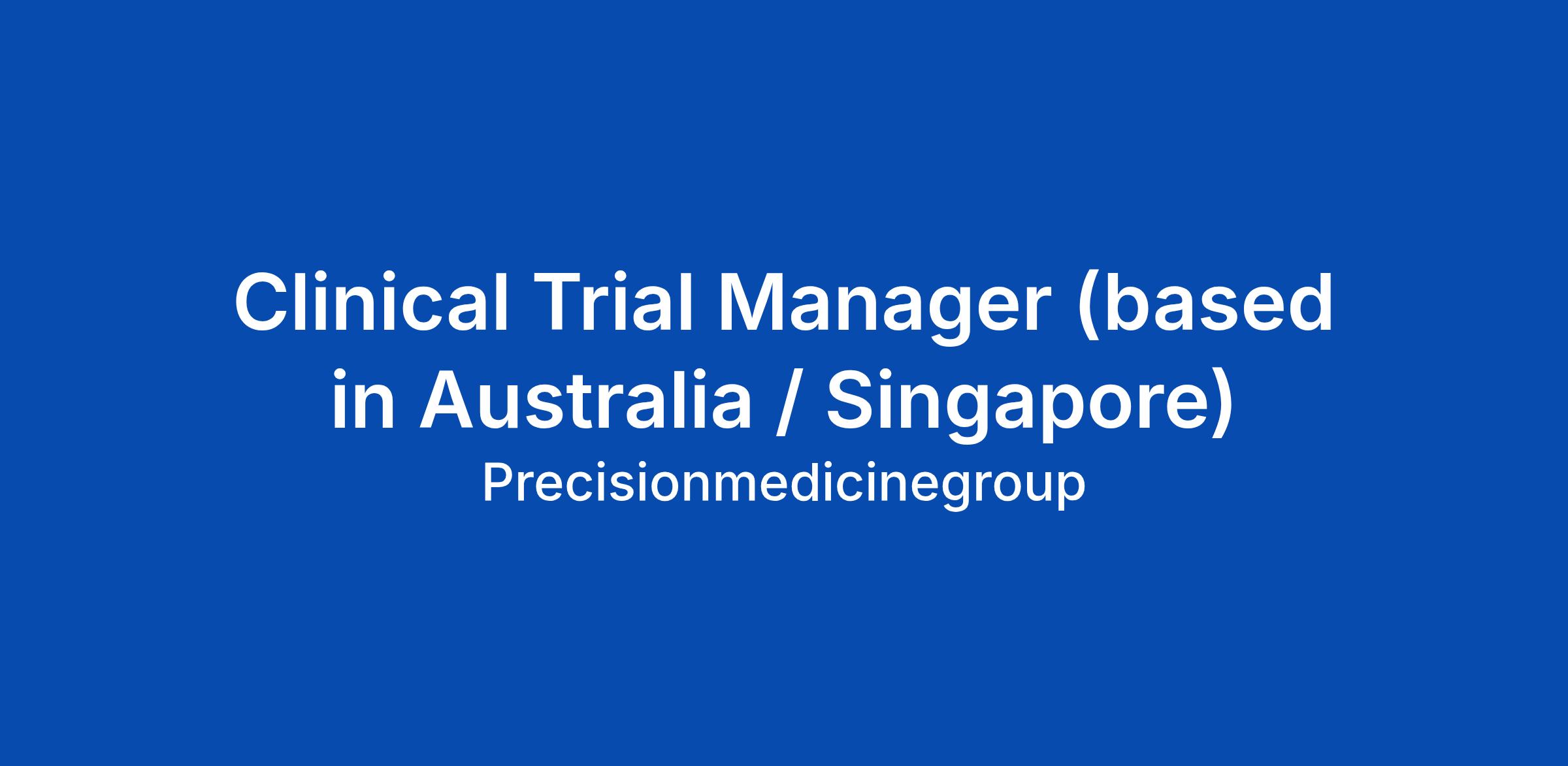 Clinical Trial Manager (based in Australia / Singapore)