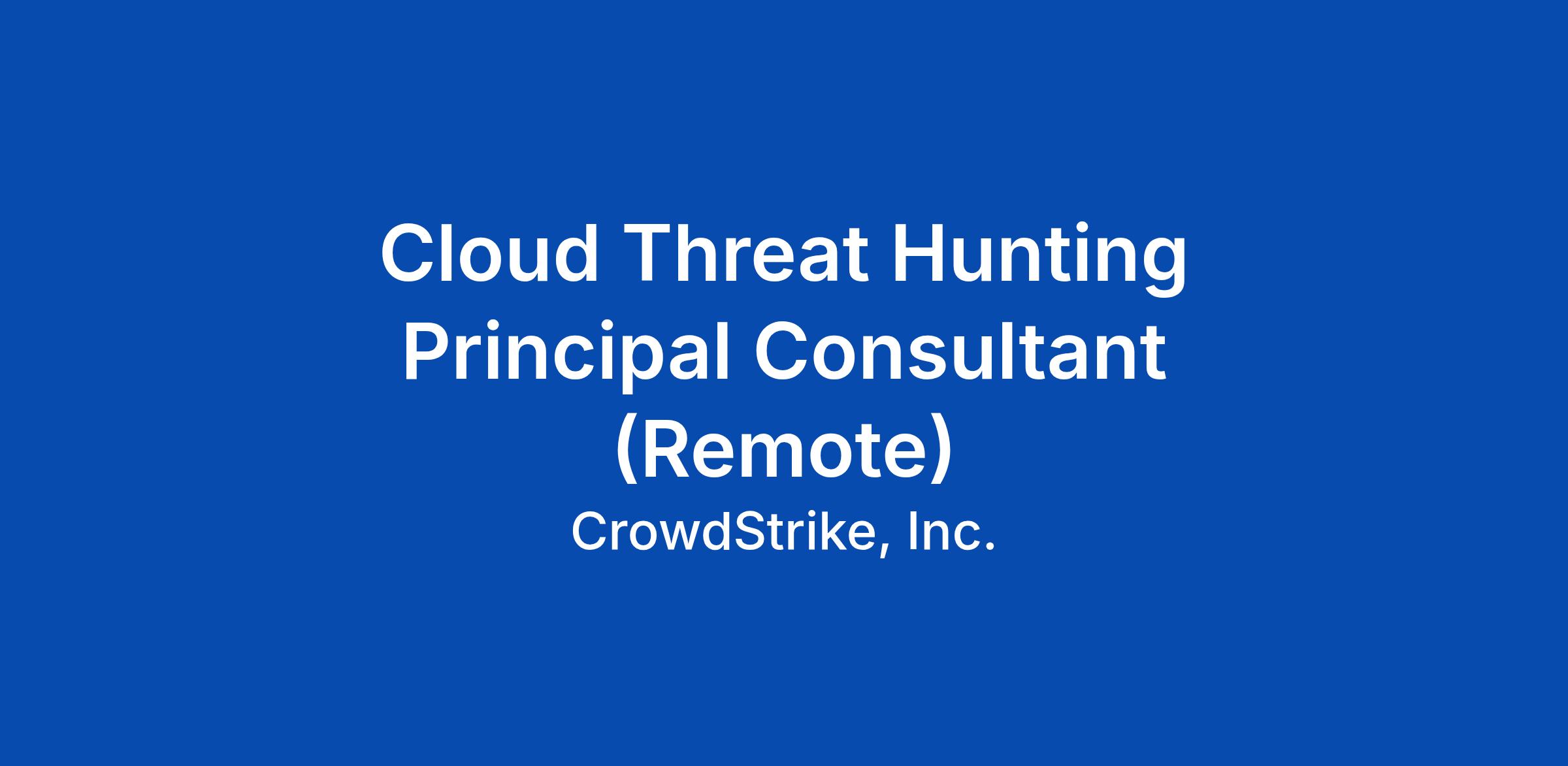 CrowdStrike is looking for a highly motivated, self-driven, cloud threat hunter dedicated to making a difference in global security by protecting organizations against the most advanced adversaries in the world. Our CrowdStrike Professional Services team offers opportunities to expand your skill set through a wide variety of impactful consulting engagements for many of the world's leading organizations.