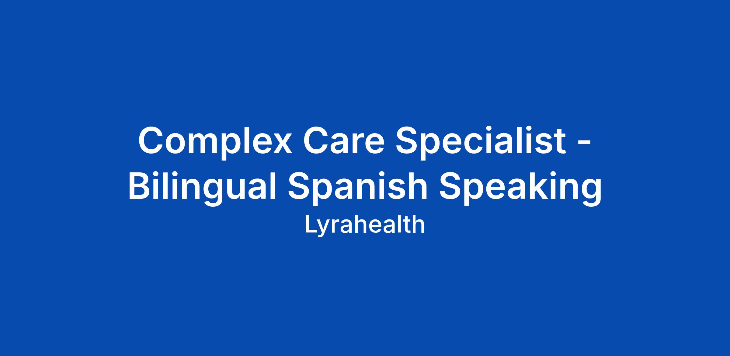 About Lyra Health Lyra Health is the leading provider of mental health solutions for employers supporting more than 20 million people globally. The company has delivered 13 million sessions of mental health care, published more than 20 peer-reviewed studies, and delivered unmatched outcomes in terms of access, clinical effectiveness and cost efficiency. Extensive peer-reviewed research confirms Lyraβs transformative care model helps people recover twice as fast and results in a 26% annual reduction in overall healthcare claims costs. Lyra is transforming access to life-changing mental health care through Lyra Empower, the only fully integrated, AI-powered platform combining the highest-quality care and technology solutions. About the Role As a Complex Care Specialist for our Complex Care program, youβll be doing the important, meaningful work of assessing client clinical needs for higher levels of care, providing in-the-moment phone support to clients with complex behavioral health issues, ensuring client safety, and navigating clients into high quality, evidence-based facilities and programs. This position does not involve providing in-person services or therapy, but instead focus