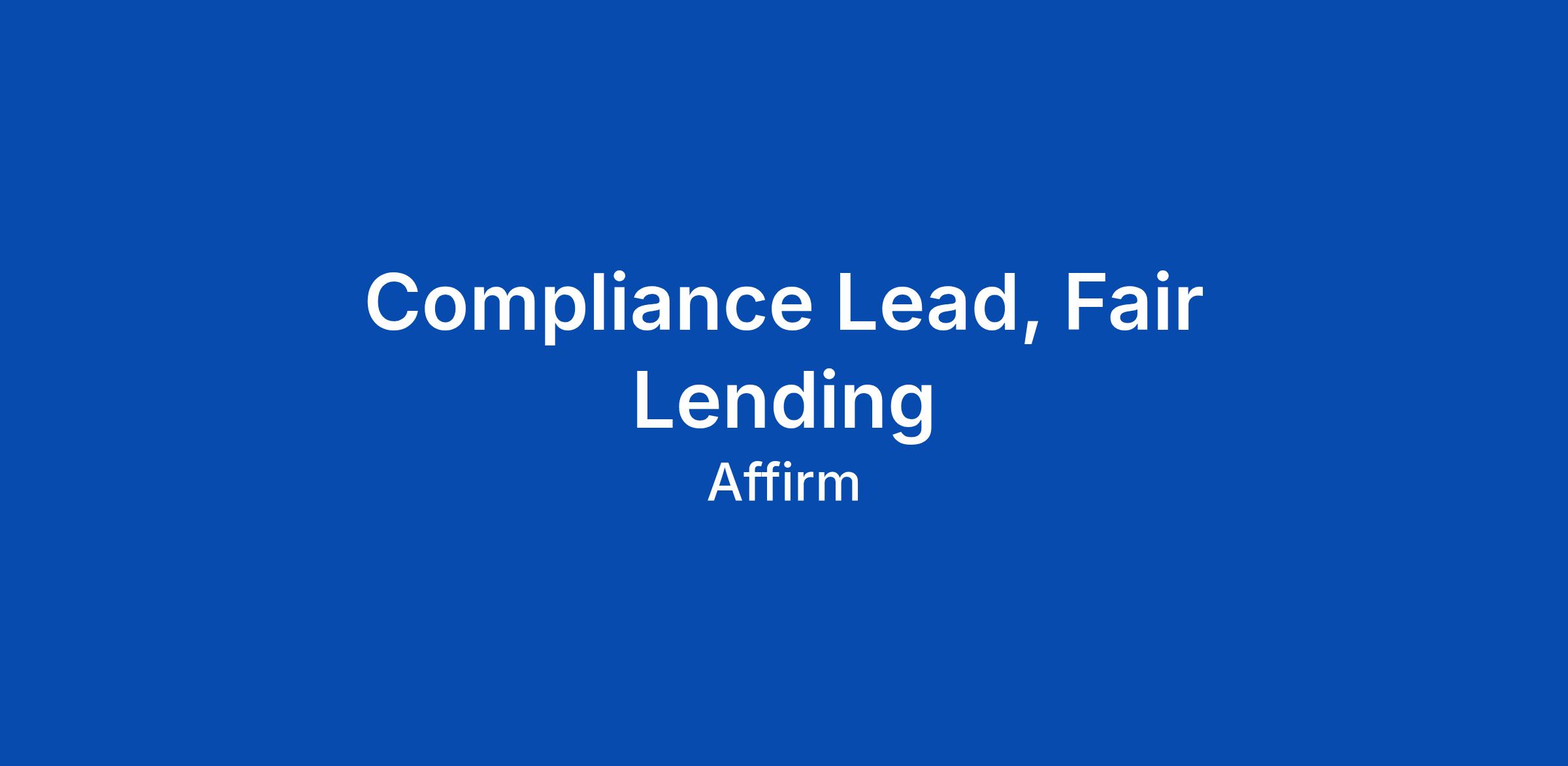 Affirmβs Compliance team designs and implements a compliance program that enables Affirm to proactively adhere to regulatory requirements while also identifying and addressing potential regulatory issues that may arise. Compliance program activities include advisory, guidance & training, independent testing ... Click Apply to read the full job description.