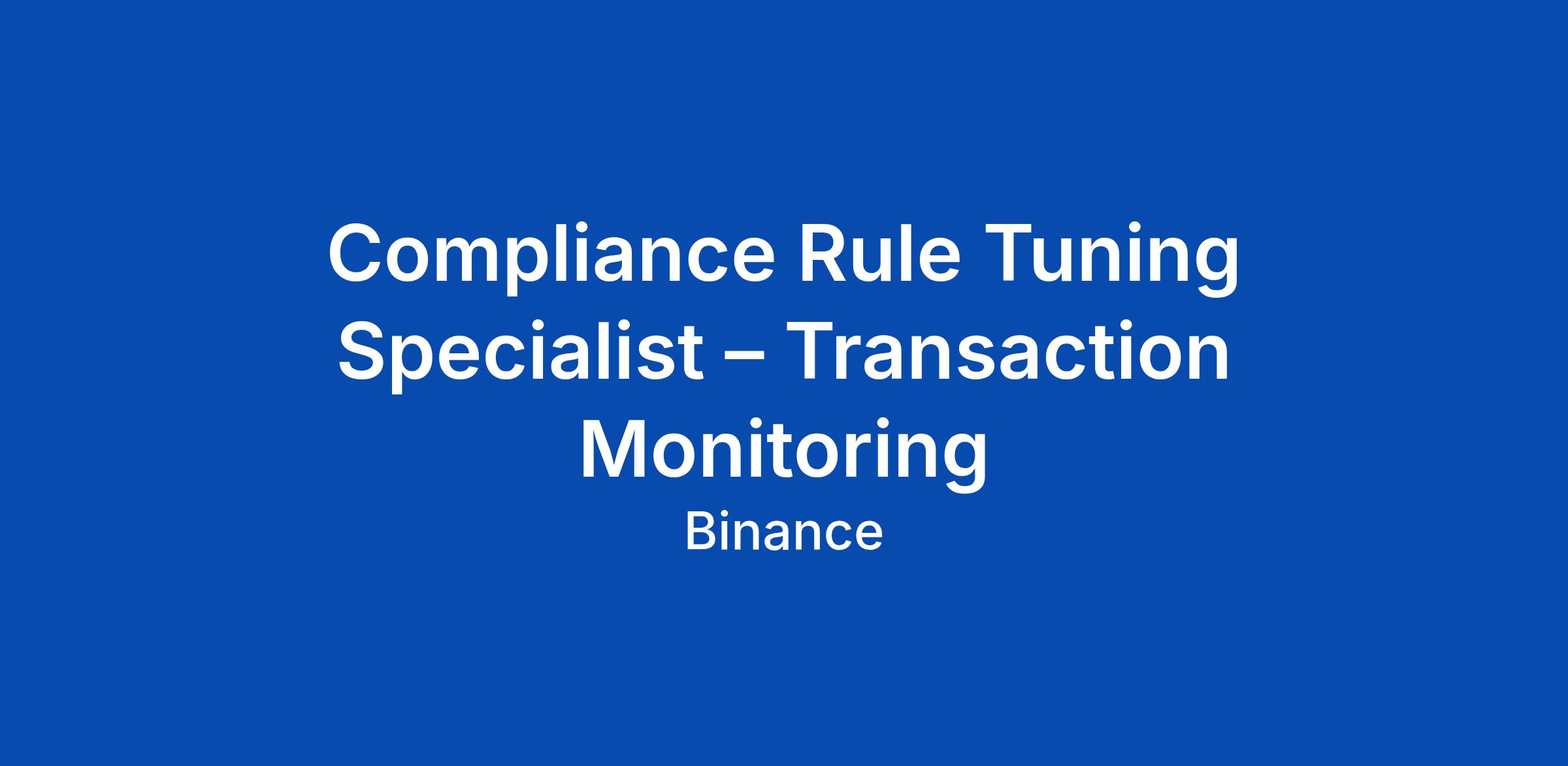 Compliance Rule Tuning Specialist – Transaction Monitoring