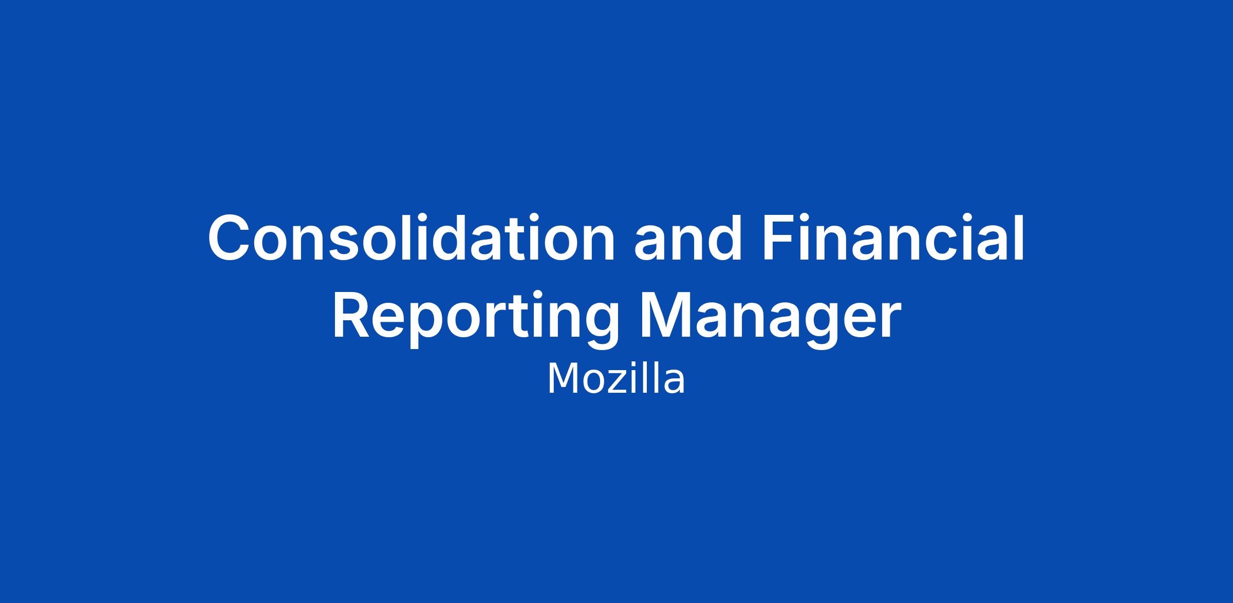 Consolidation and Financial Reporting Manager