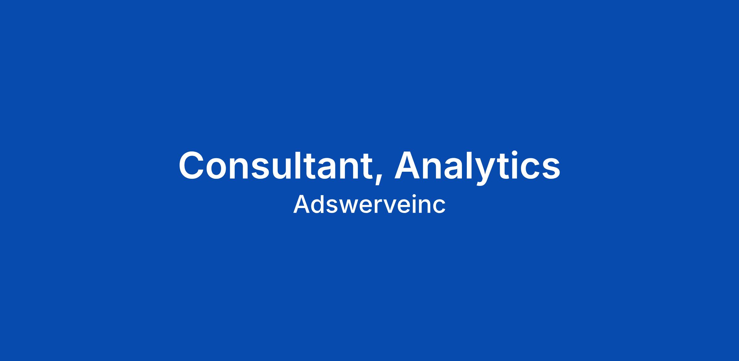 Adswerve is looking for a Consultant, Analytics to join the Analytics Services Team! This person will sit in a pod, or group, completing tasks for clients... Click Apply to read the full job description.