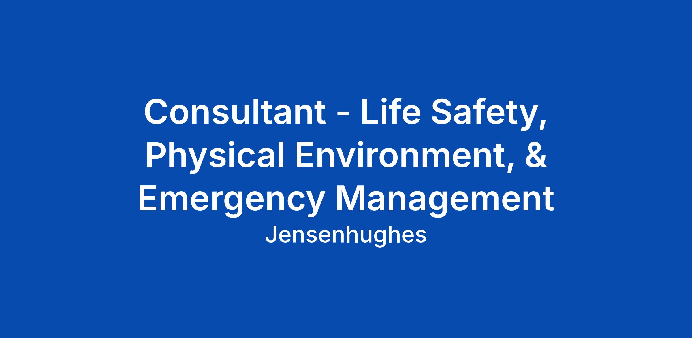 Consultant - Life Safety, Physical Environment, & Emergency Management
