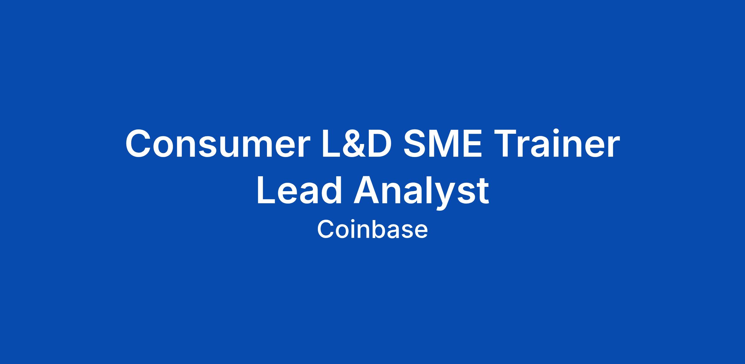 Consumer L&D SME Trainer Lead Analyst