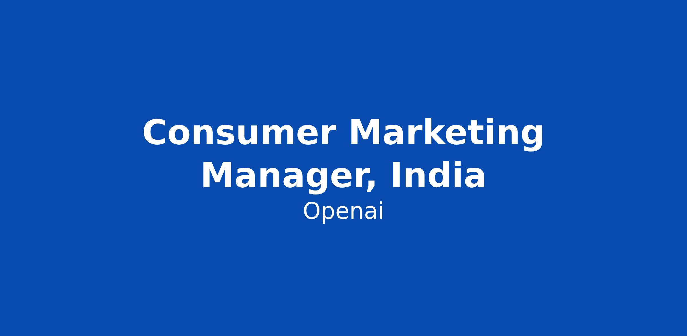 Consumer Marketing Manager, India