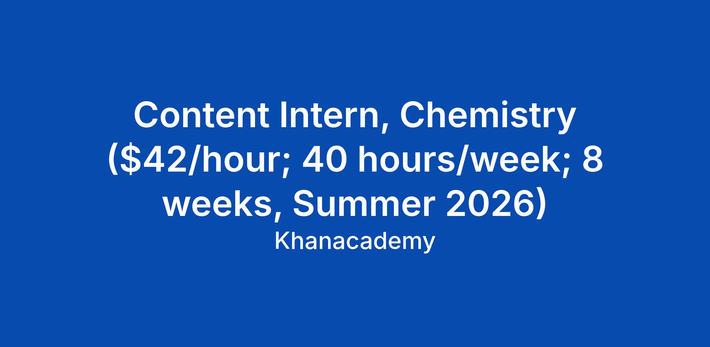 Content Intern, Chemistry ($42/hour; 40 hours/week; 8 weeks, Summer 2026)