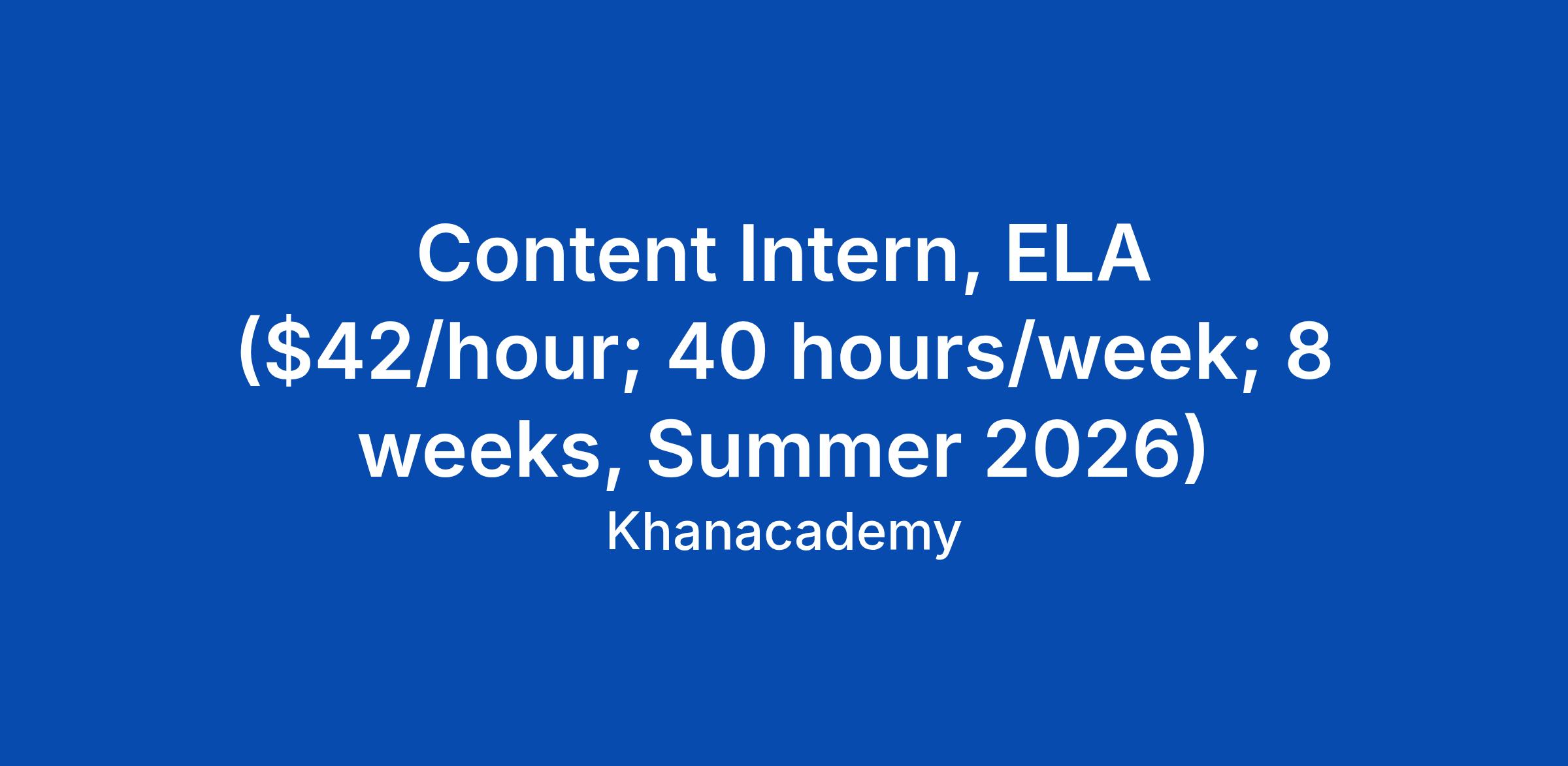 Content Intern, ELA ($42/hour; 40 hours/week; 8 weeks, Summer 2026)