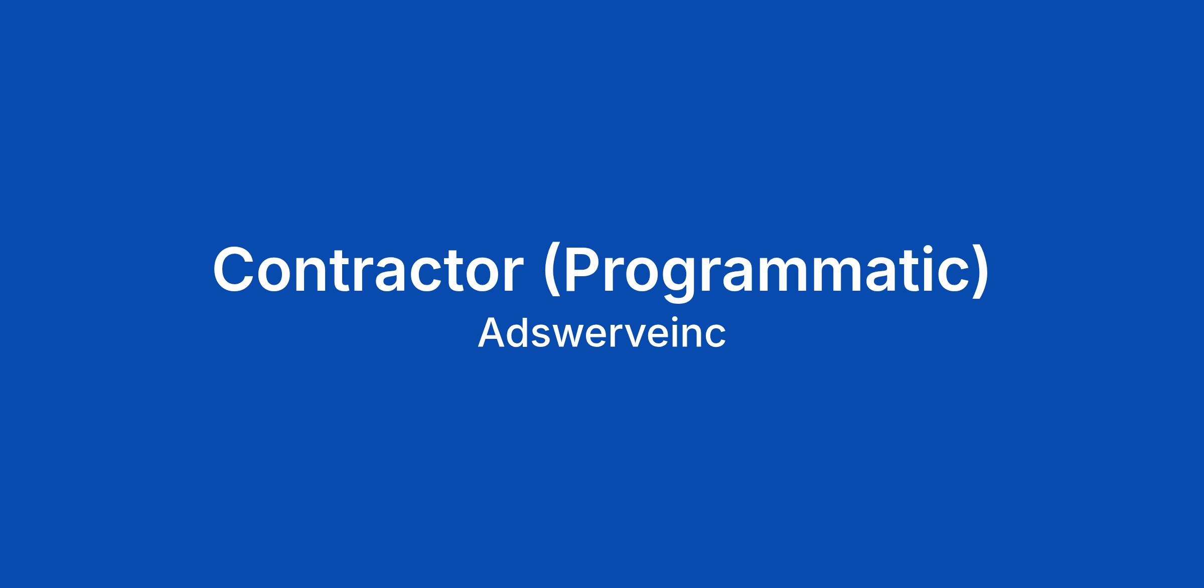 Adswerve is looking for a Contractor (Programmatic) to help the Performance Media team for up to 20 hours a week. This contractor will be responsible for the end-to-end execution, management, and optimization of programmatic media ... Click Apply to read the full job description.