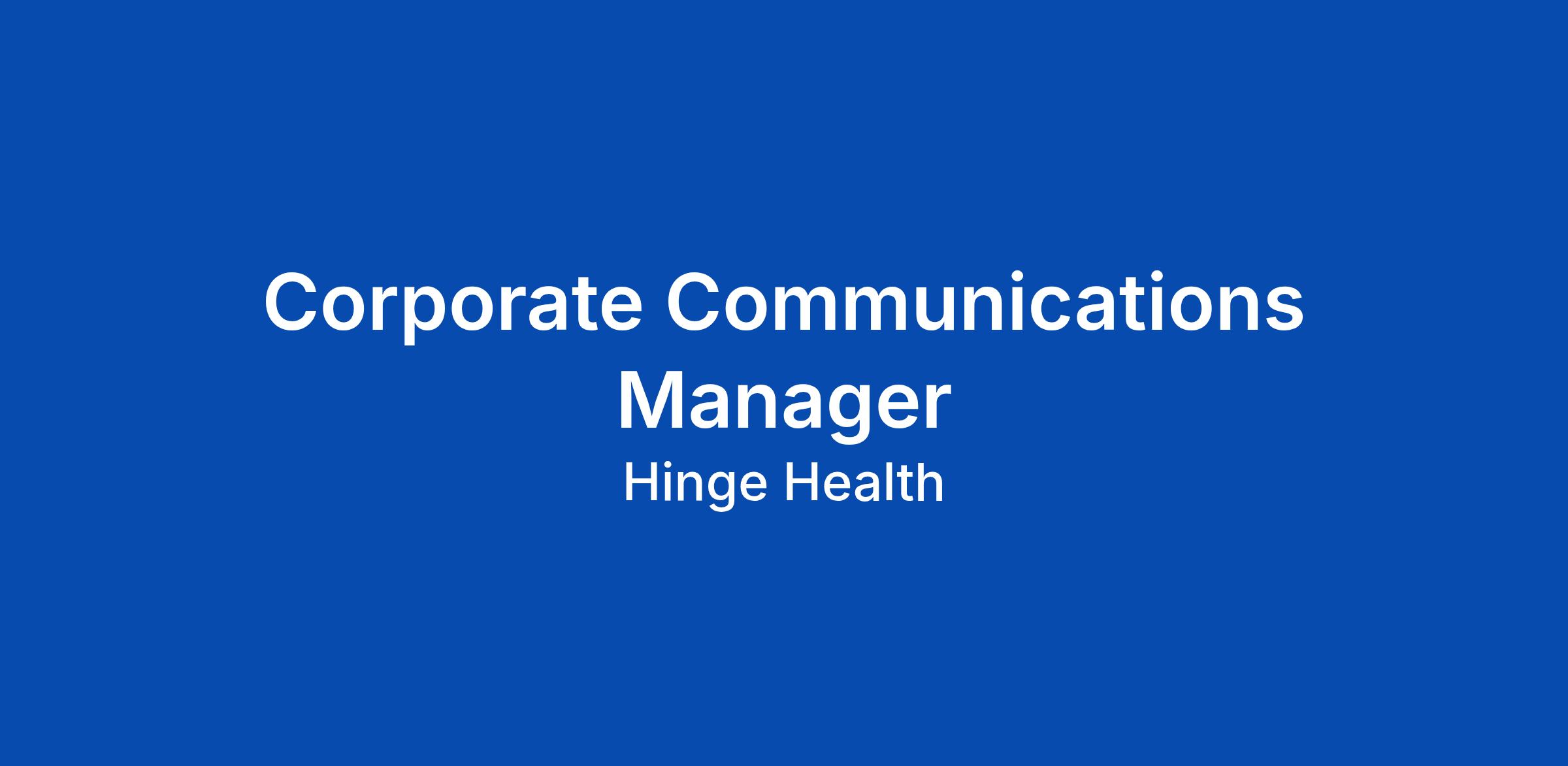 THE OPPORTUNITY Hinge Health is transforming MSK care for millions of people—and as a newly public company, the stakes have never been higher. Every earnings call, product launch, and media engagement is an opportunity to shape how investors, employees, and the market understand our mission and momentum. We need a Corporate Communications Manager who can translate complex business strategy and financial performance into narratives that land with precision and impact. You'll be the storytelling engine behind our corporate reputation—partnering with Investor Relations, executive leadership, and cross-functional teams to craft communications that move the needle on share of voice, stakeholder confidence, and internal alignment. If you thrive in high-stakes environments where your words shape perception and drive outcomes, this role is for you. WHAT YOU'LL ACCOMPLISH In your first 3 months: - Build deep fluency in Hinge Health's business model, financial narrative, and competitive positioning by shadowing earnings calls and executive briefings - Establish trust with key stakeholders—IR, executive leadership, and cross-functional partners—by delivering on quick-win projects like press r