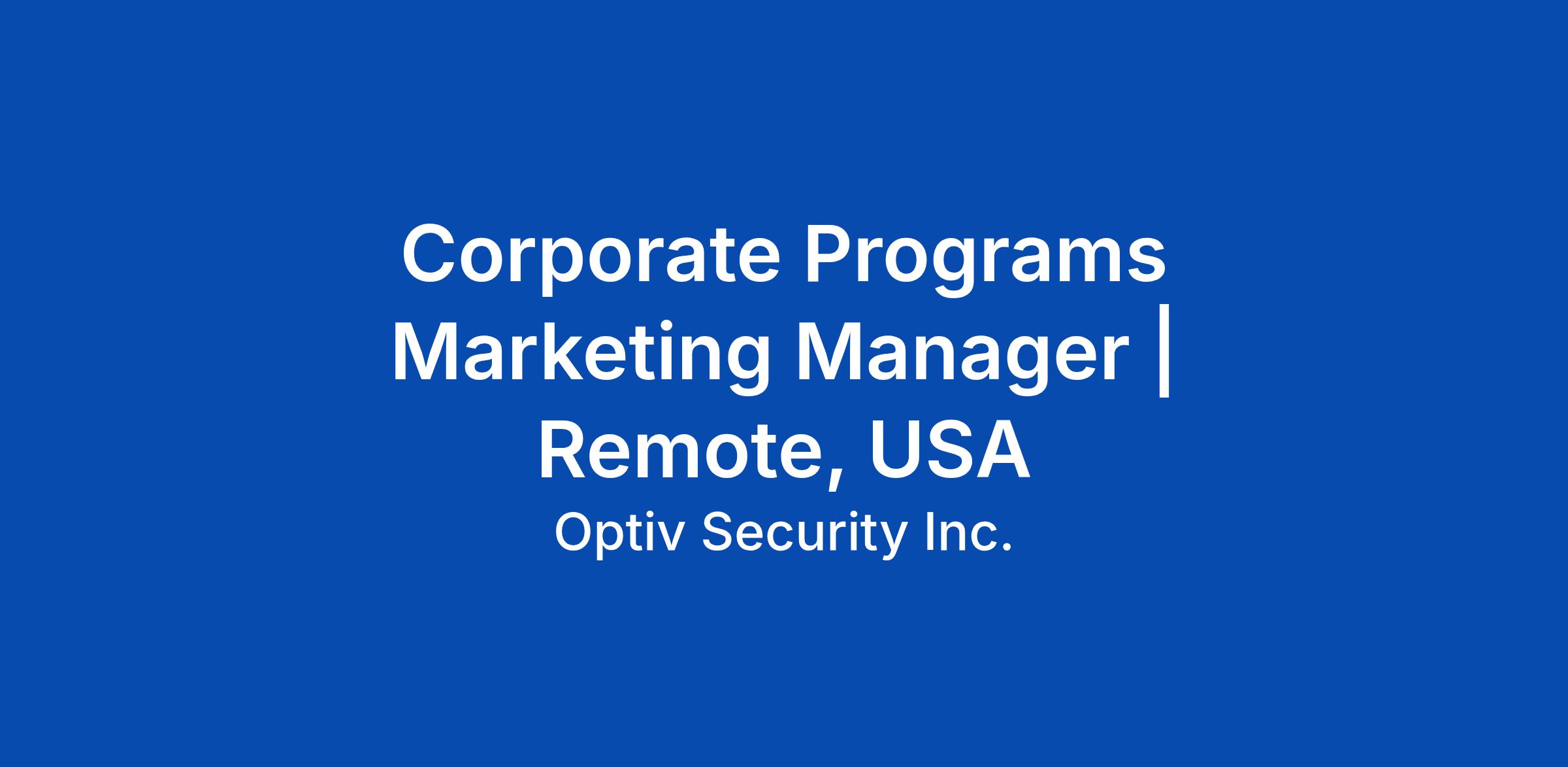 The Corporate Programs Marketing Manager will be a crucial member of the team, focused on driving and executing Optiv’s global events. In this highly visible role, this person is responsible for the strategic execution of a variety of large industry shows, internal kickoffs, national roadshows, virtual experiences, and partner-end user conferences. They will be responsible for strategically bringing excitement, innovation, and excellence to amplify and support Optiv’s brand and business growth. This position works on a national level with Optiv’s Sales Go-To-Market team, AVPs, Regional Sales Directors, and Executive Leadership Team. The ideal candidate will be a strategic thinker who understands the business and evolving priorities, and how they apply to events to deliver strong ROI and create meaningful engagements for Optiv clients.