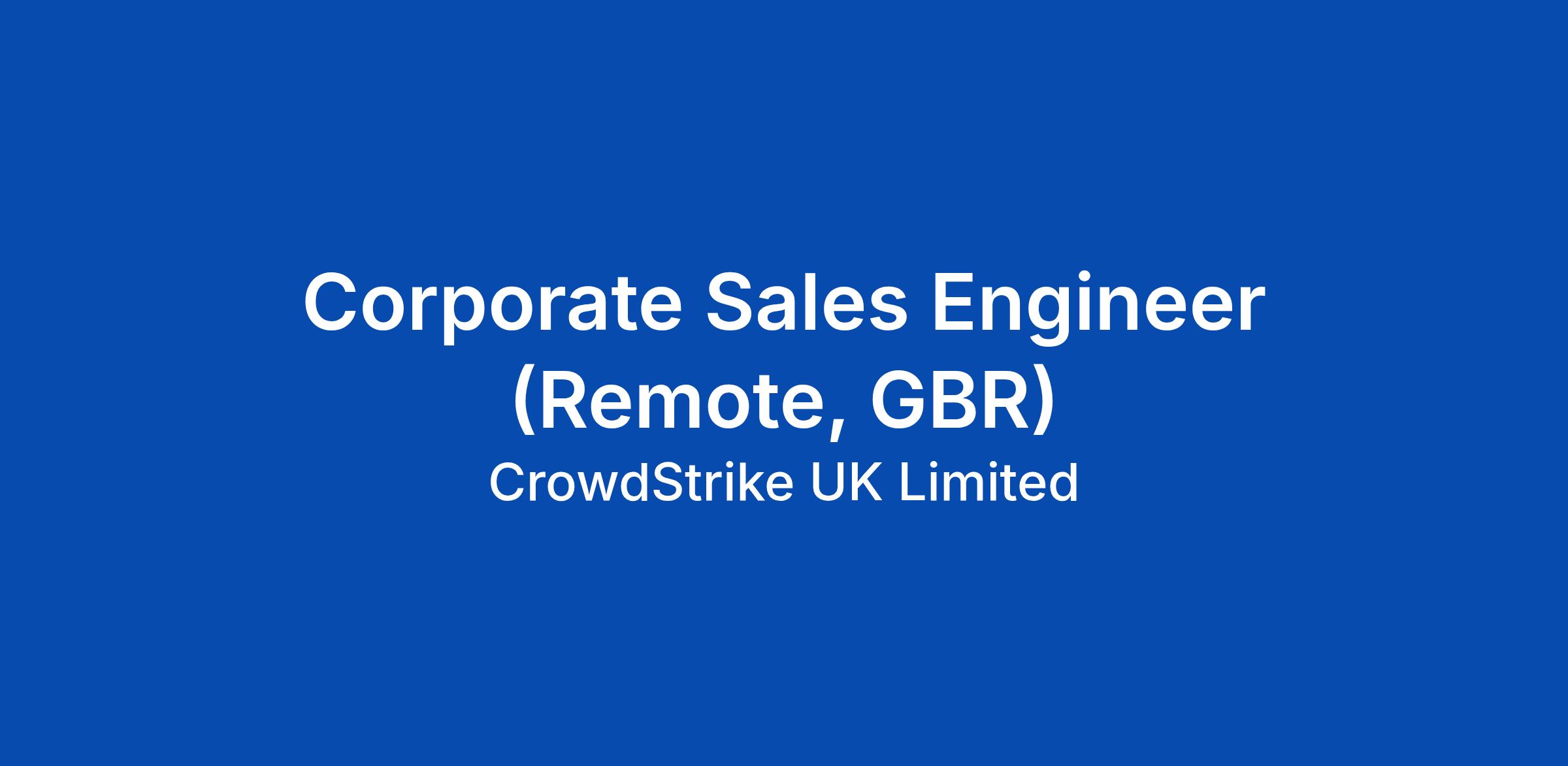 Corporate Sales Engineer (Remote, GBR)