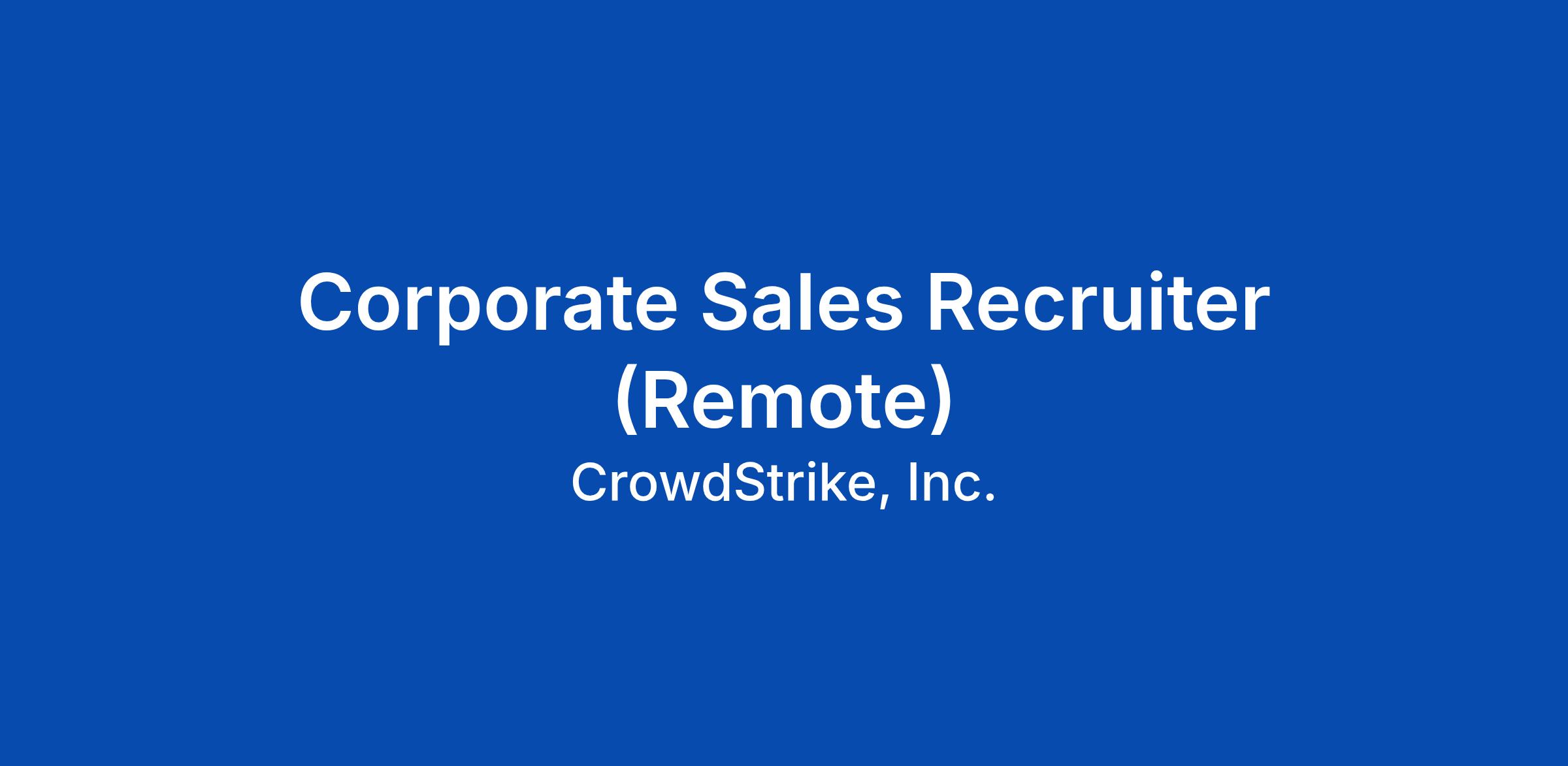 CrowdStrike is seeking a Corporate Sales Recruiter to join our growing Talent Acquisition team. We are looking for someone who thrives in a fast past and energetic environment delivering exceptional candidate and client experience. This person will act as an advisor to our hiring manager and an advocate for CrowdStrike as they may be the first point of contact for many candidates.