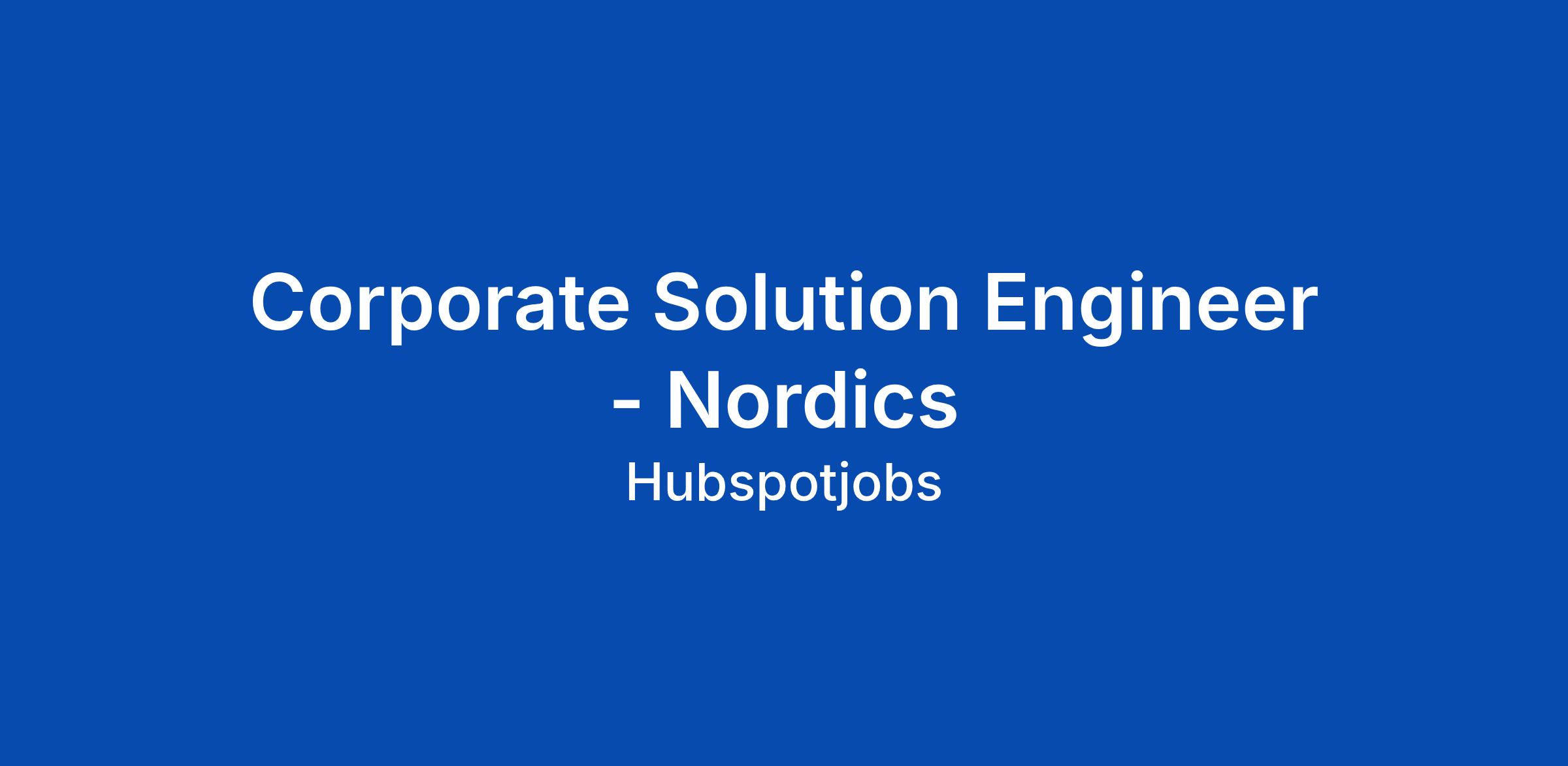 Corporate Solution Engineer - Nordics