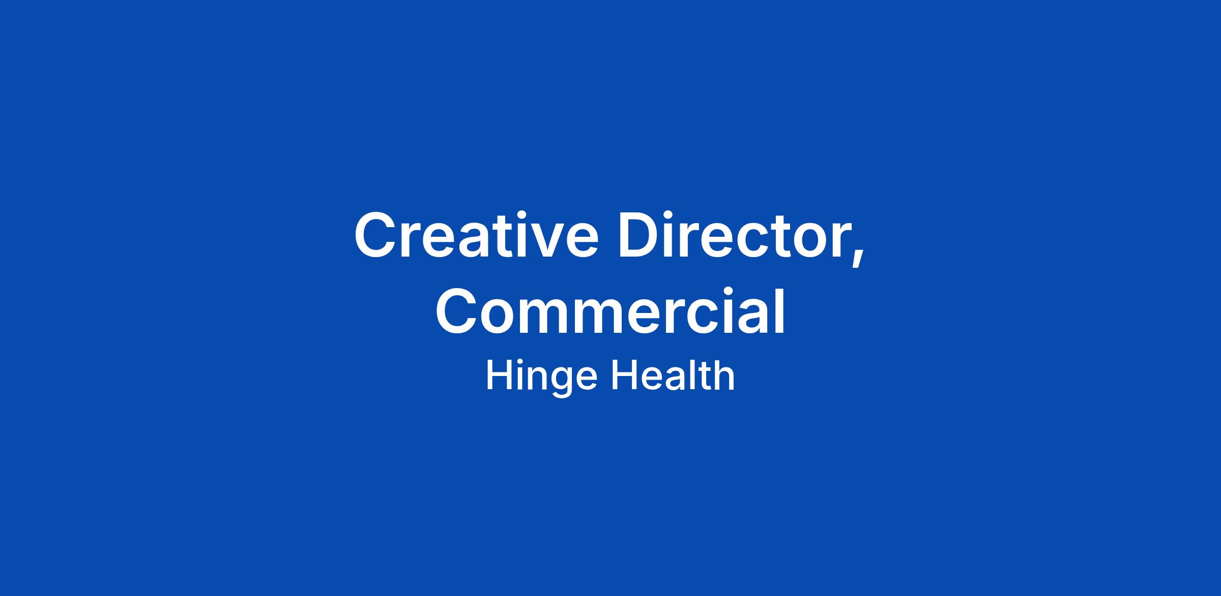 ABOUT THIS JOB We are seeking a Commercial Creative Director to lead the creative strategy for Hinge Health’s enterprise initiatives, serving as the driving force behind how our brand resonates with the world’s leading employers. In this pivotal role, you will bridge the gap between complex clinical innovation and human connection, partnering with Commercial, Product Marketing, and Sales leadership to transform business goals into high-performing integrated campaigns, bespoke ABM experiences, and immersive brand activations. From overseeing large-scale events, integrated GTM campaigns to sales enablement toolkits, you will lead a talented multidisciplinary team in delivering work that is visually stunning and commercially effective. This is a unique opportunity to combine creative storytelling with business strategy to shape the future of digital healthcare. WHAT YOU’LL ACCOMPLISH Strategic Creative Leadership - Lead the creative vision: Define and drive the creative strategy for all commercial and B2B marketing initiatives, ensuring lockstep alignment with Hinge Health’s brand identity and business goals. - Translate value: Transform complex clinical and technical value propositio