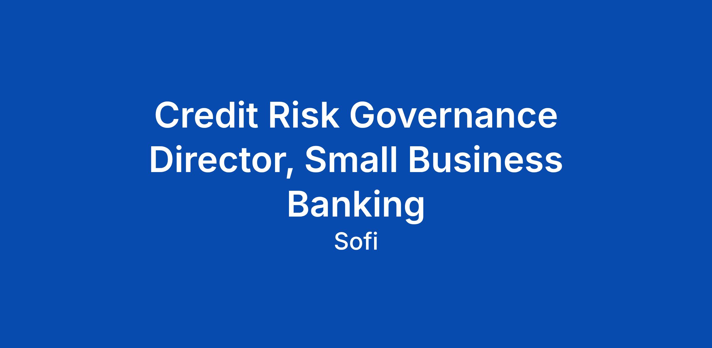 Credit Risk Governance Director, Small Business Banking