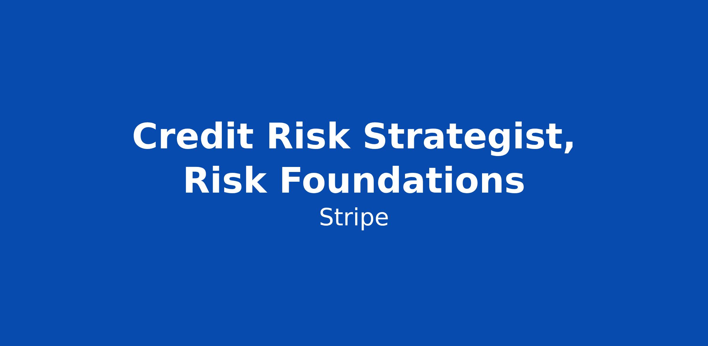 Credit Risk Strategist, Risk Foundations