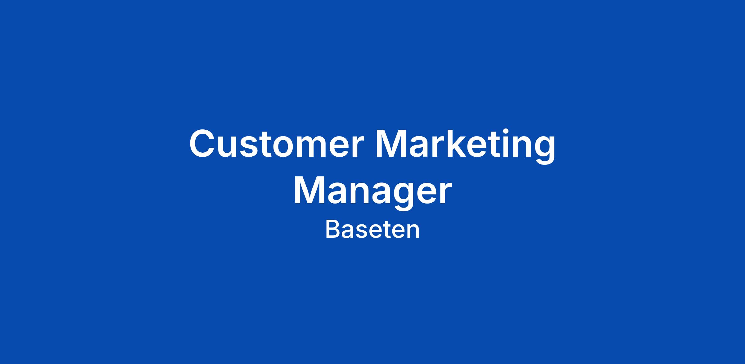ABOUT BASETEN Baseten powers mission-critical inference for the world's most dynamic AI companies, like Cursor, Notion, OpenEvidence, Abridge, Clay, Gamma and Writer. By uniting applied AI research, flexible infrastructure, and seamless developer tooling, we enable companies operating at the frontier of AI to bring cutting-edge models into production. We're growing quickly and recently raised our $300M Series E https://www.baseten.co/blog/announcing-baseten-s-300m-series-e/, backed by investors including BOND, IVP, Spark Capital, Greylock, and Conviction. Join us and help build the platform engineers turn to to ship AI products. THE ROLE We're looking for a Customer Marketing Manager who can own the full customer evidence motion at Baseten: building the systems that capture customer stories, running the co-marketing programs that amplify them, and developing the channels and assets that get those stories in front of the right people. Our customers are ML engineers and AI teams deploying serious workloads β and the stories they tell about what they've built matter. We've earned trust with some of the most demanding technical teams in the industry, and this role exists to turn that t
