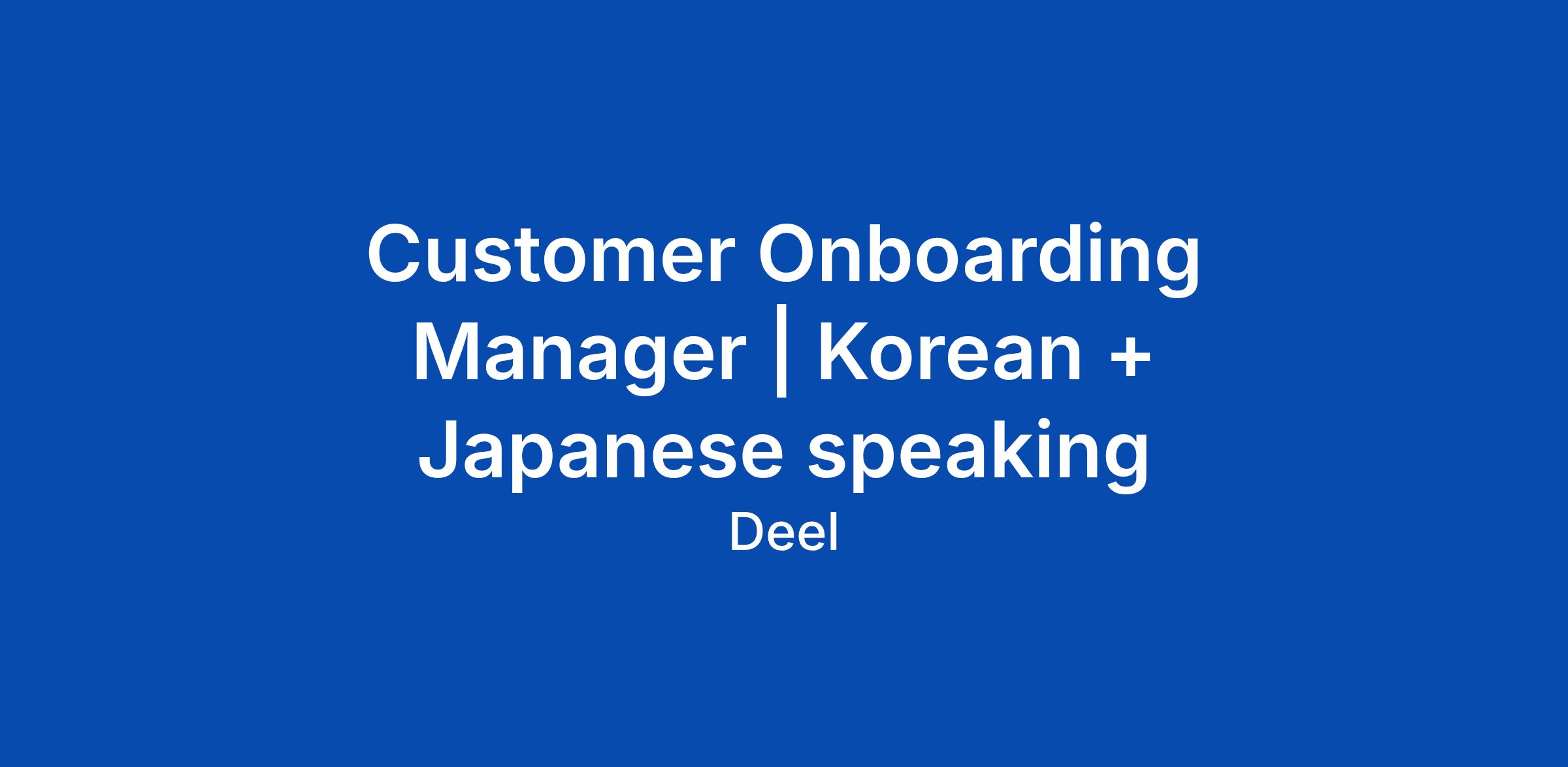 Customer Onboarding Manager | Korean + Japanese speaking