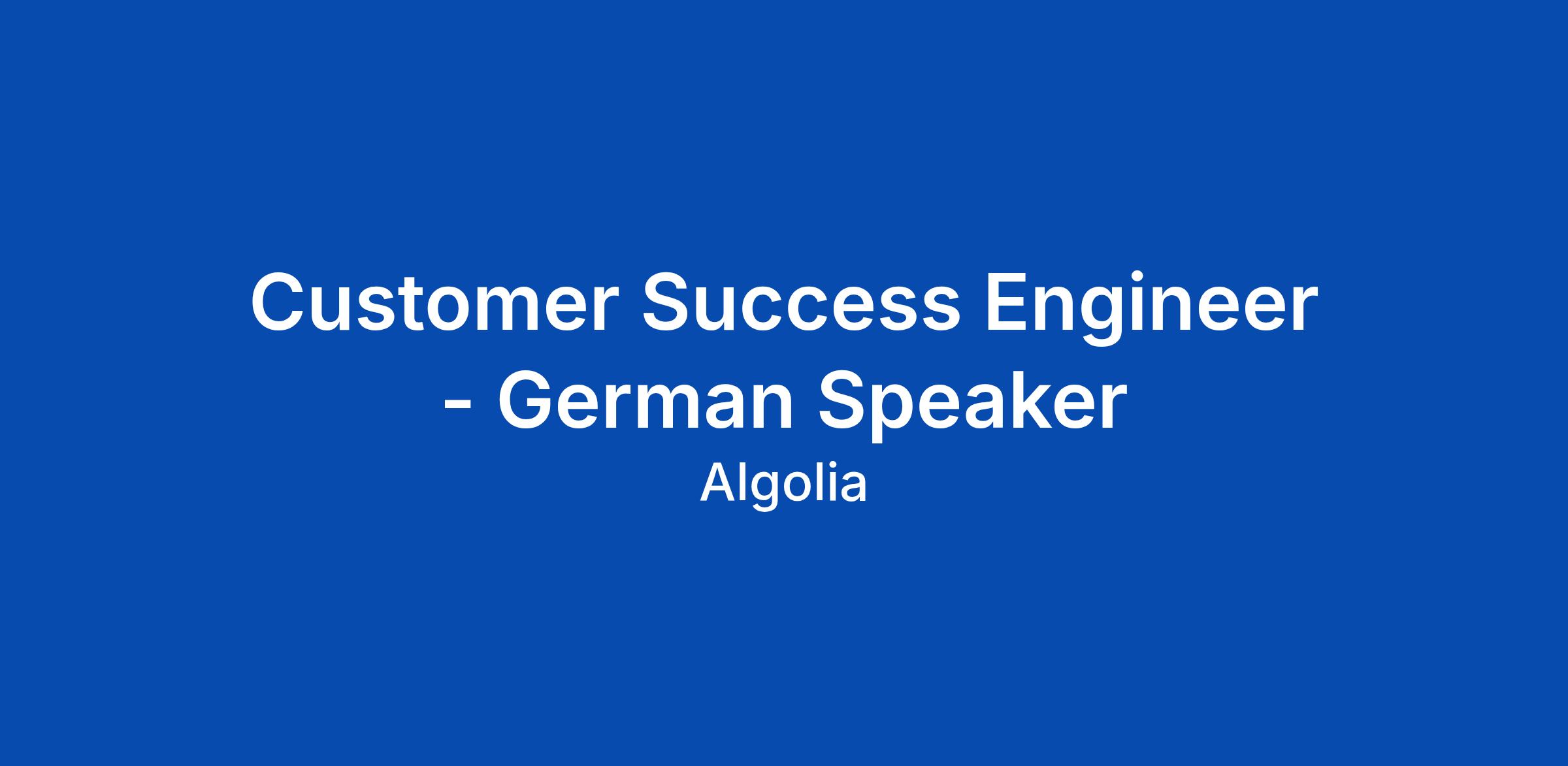 Customer Success Engineer - German Speaker