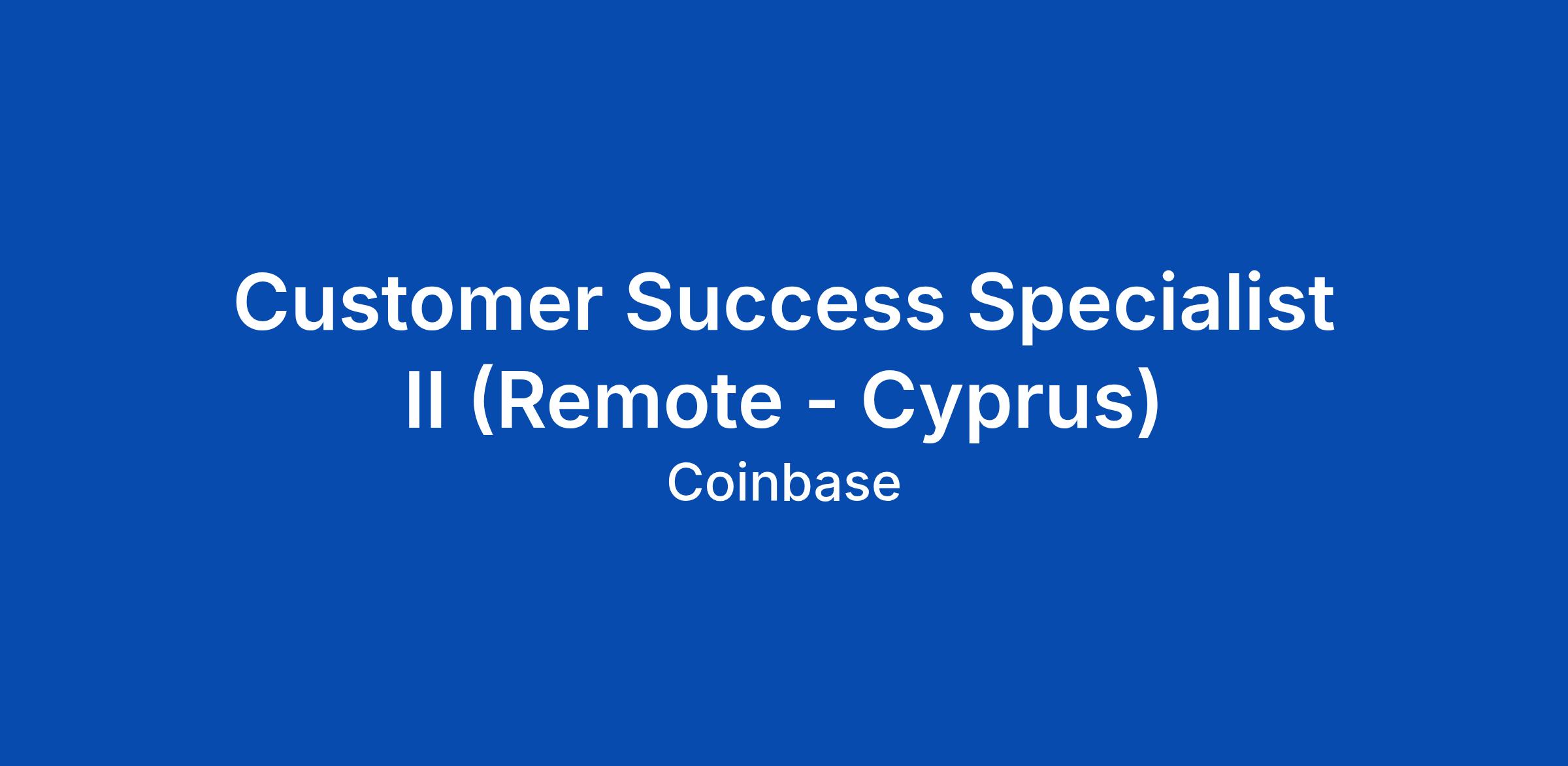 Customer Success Specialist II (Remote - Cyprus)