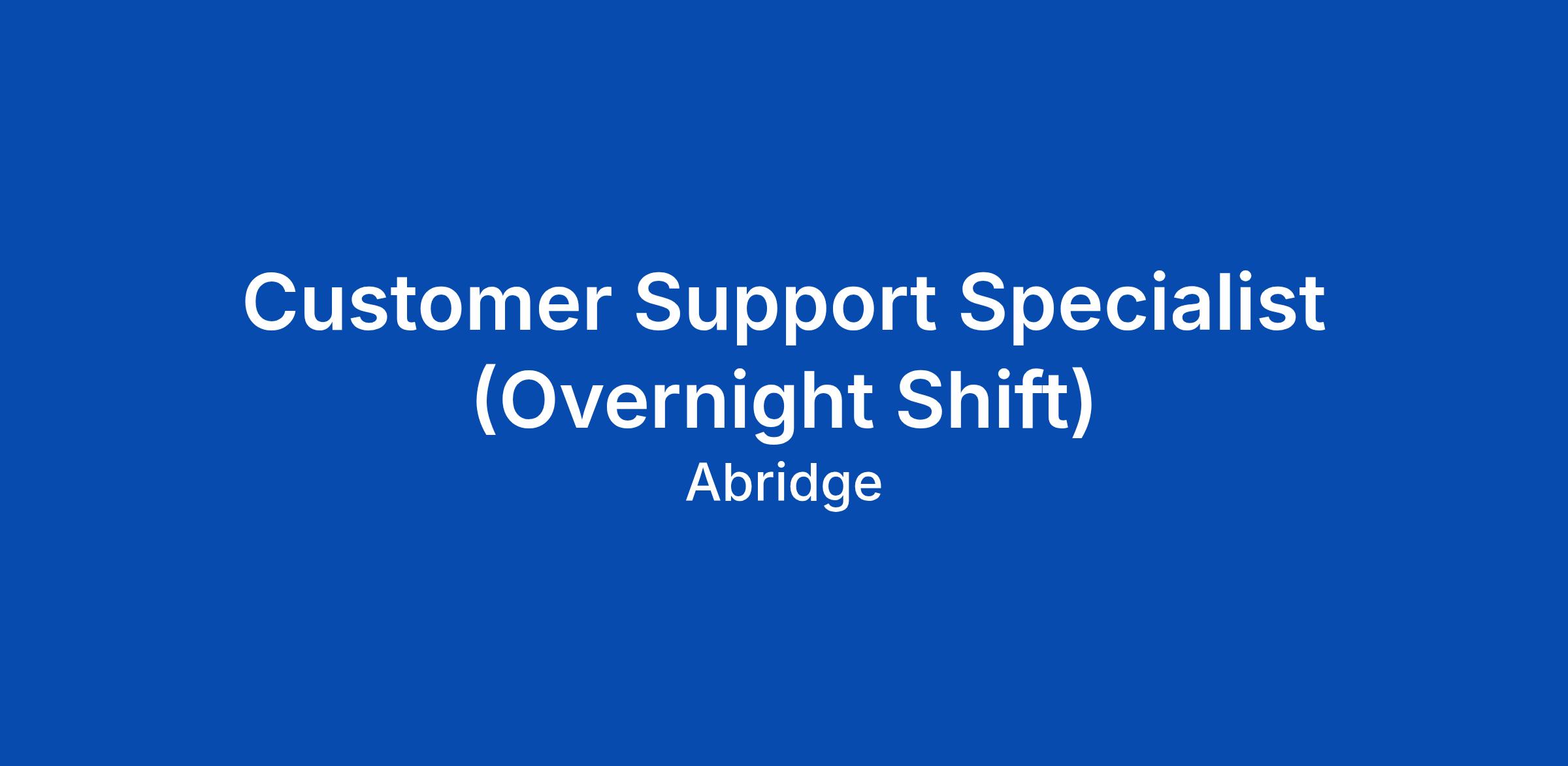 Customer Support Specialist (Overnight Shift)