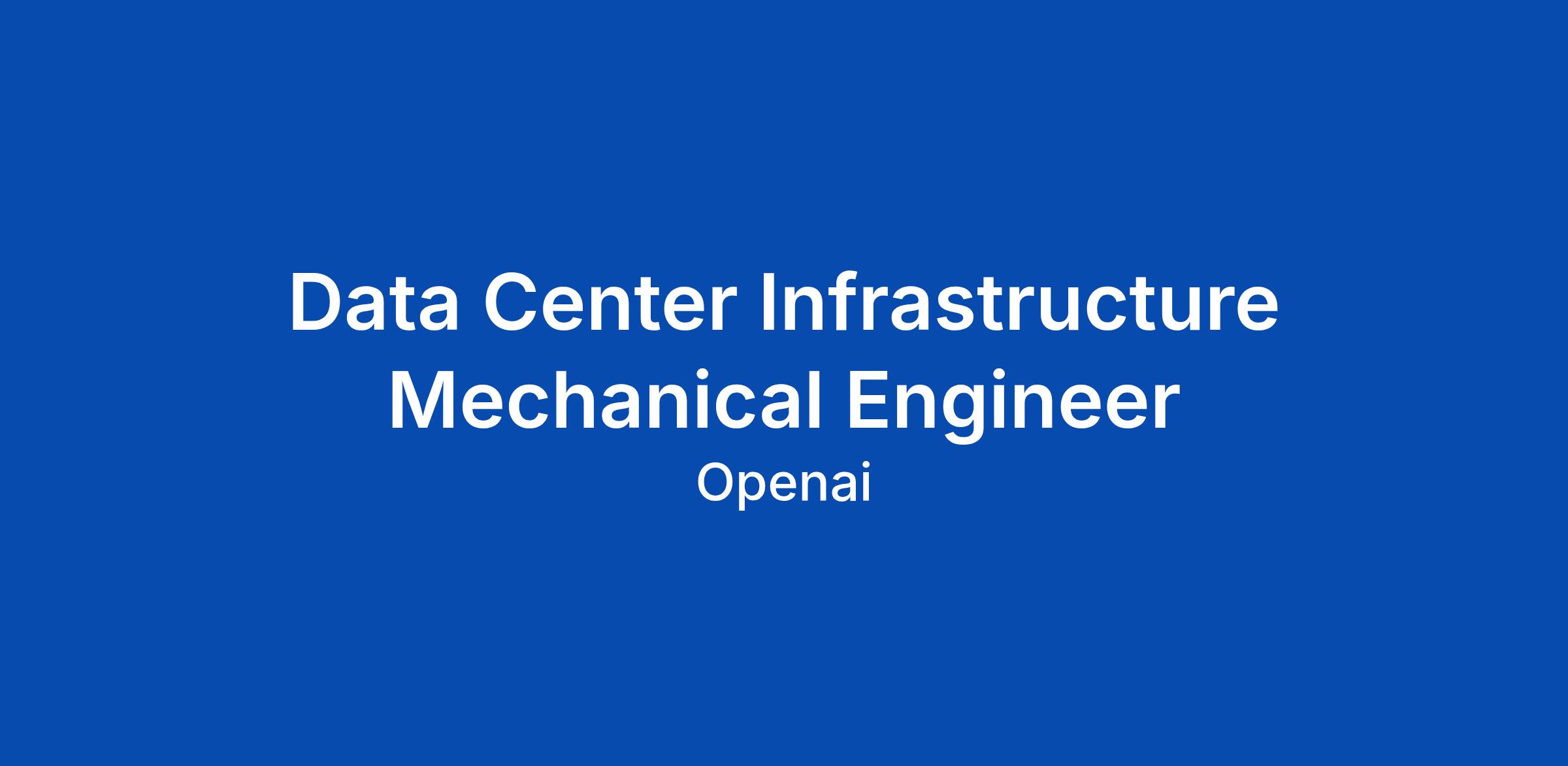 About the Team OpenAI is building the infrastructure foundation for the next generation of AI. The Data Center Engineering team defines the strategy, reference architectures, technical requirements, and delivery standards for the large-scale data centers that support OpenAI research, products, and infrastructure partners. As a Data Center Infrastructure Mechanical Engineer, you will help design, validate, and scale the cooling and mechanical systems that make high-density AI compute possible. You will work across thermal architecture, equipment development, manufacturing validation, construction, commissioning, deployment, and operations, partnering with research, hardware engineering, data center engineering, supply chain, EHS, operations, and external delivery partners. About The Role We are seeking a senior mechanical infrastructure engineer to lead the development of reliable, efficient, safe, and scalable thermal architectures for high-density, liquid-cooled AI data centers. This role is ideal for someone who can translate evolving compute and rack-level thermal requirements into practical infrastructure designs, evaluate complex equipment and vendor solutions, and drive techn... Click Apply to read the full job description.