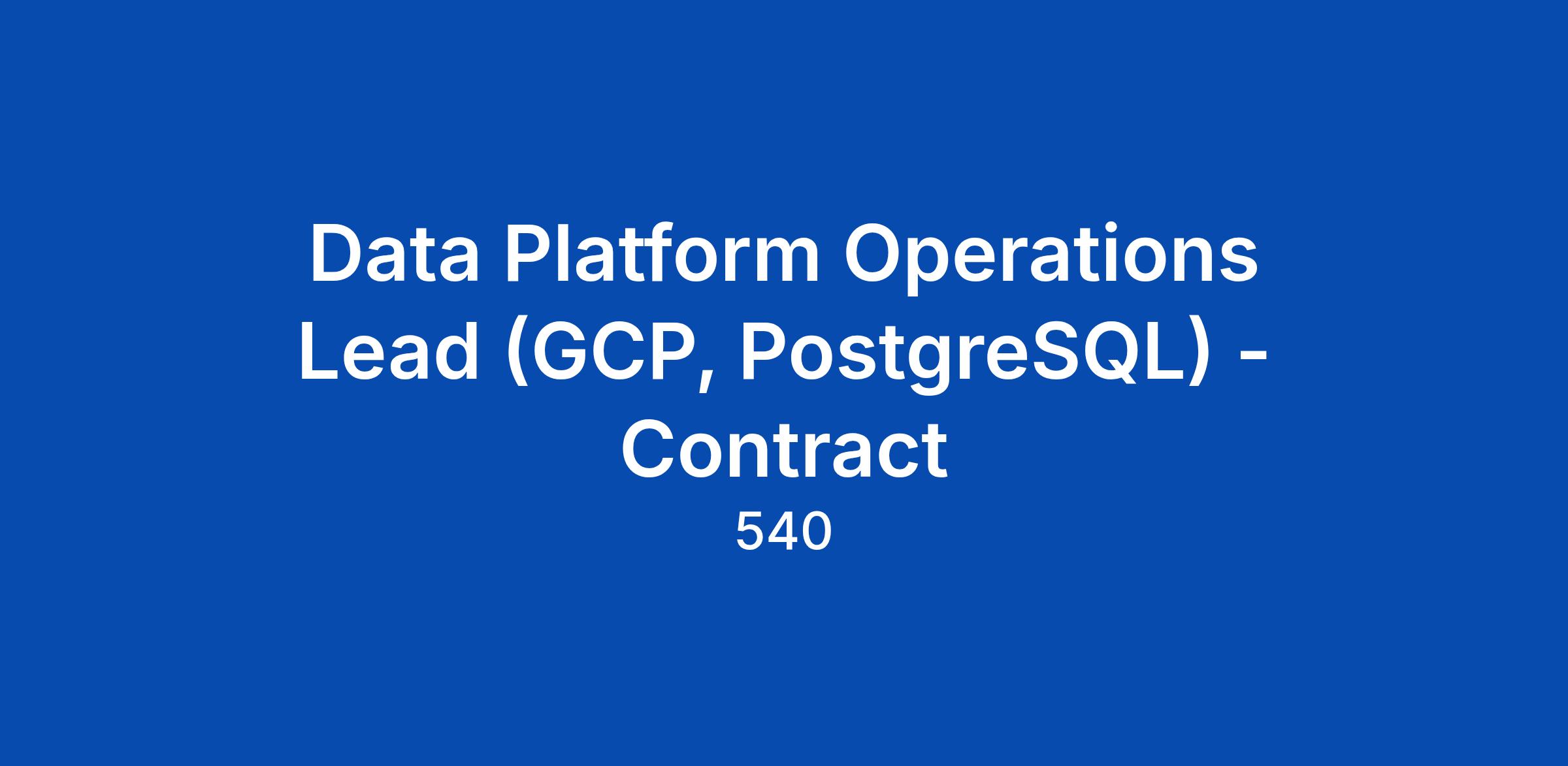540 is seeking a Data Platform Operations Lead to serve as an embedded SME and advisor, driving operational excellence, performance optimization, and production readiness for an AlloyDB-based platform in a FedRAMP High environment. Youβll join a high-impact team supporting a mission-critical data platform built on Google Cloud Platform (GCP). In this role, you will bridge the gap between complex database architecture and mission objectives, serving as a strategic liaison to client stakeholders while overseeing the technical evolution of the platformβs operations. This is a hands-on leadership role requiring deep expertise in PostgreSQL, Infrastructure as Code (IaC) and cloud-based data platform operations.