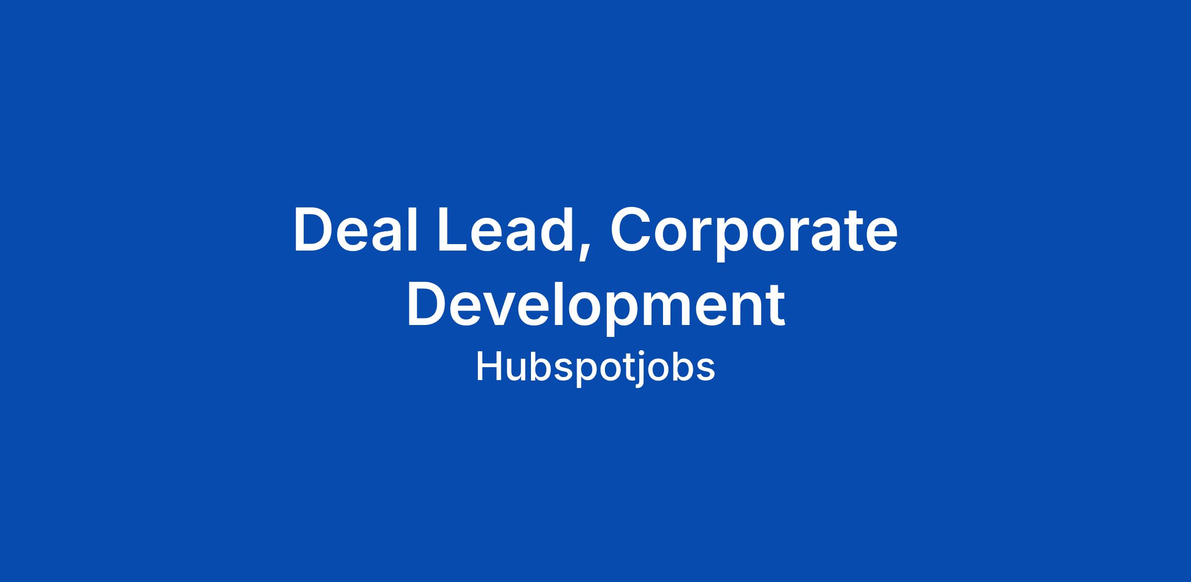 Deal Lead, Corporate Development