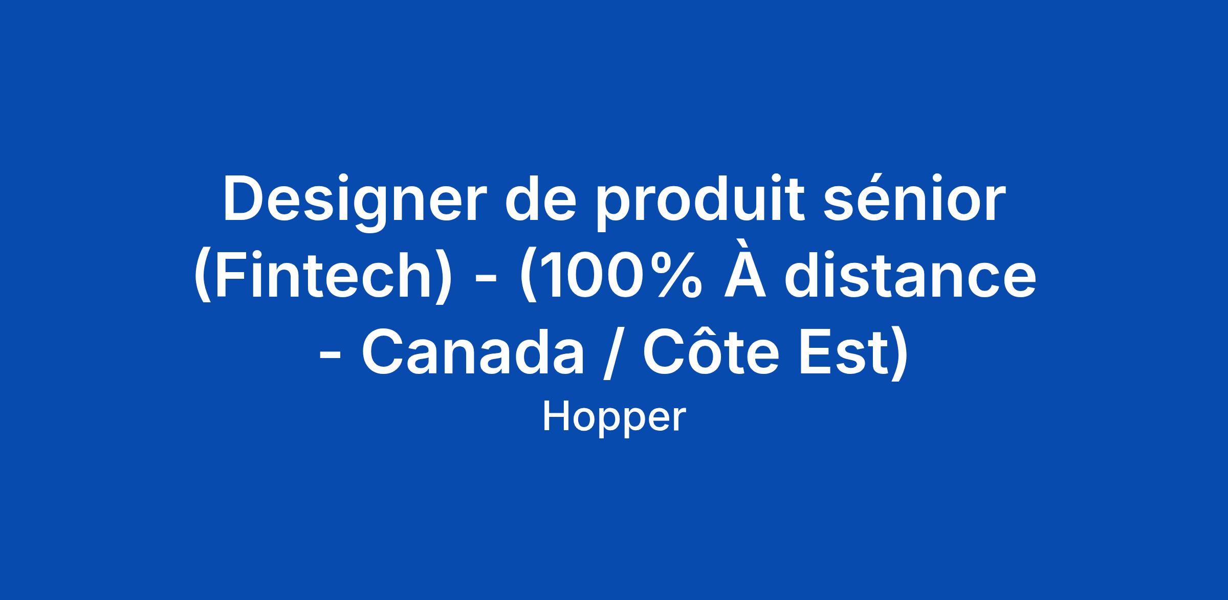Designer de produit sénior (Fintech) - (100% À distance - Canada / Côte Est)