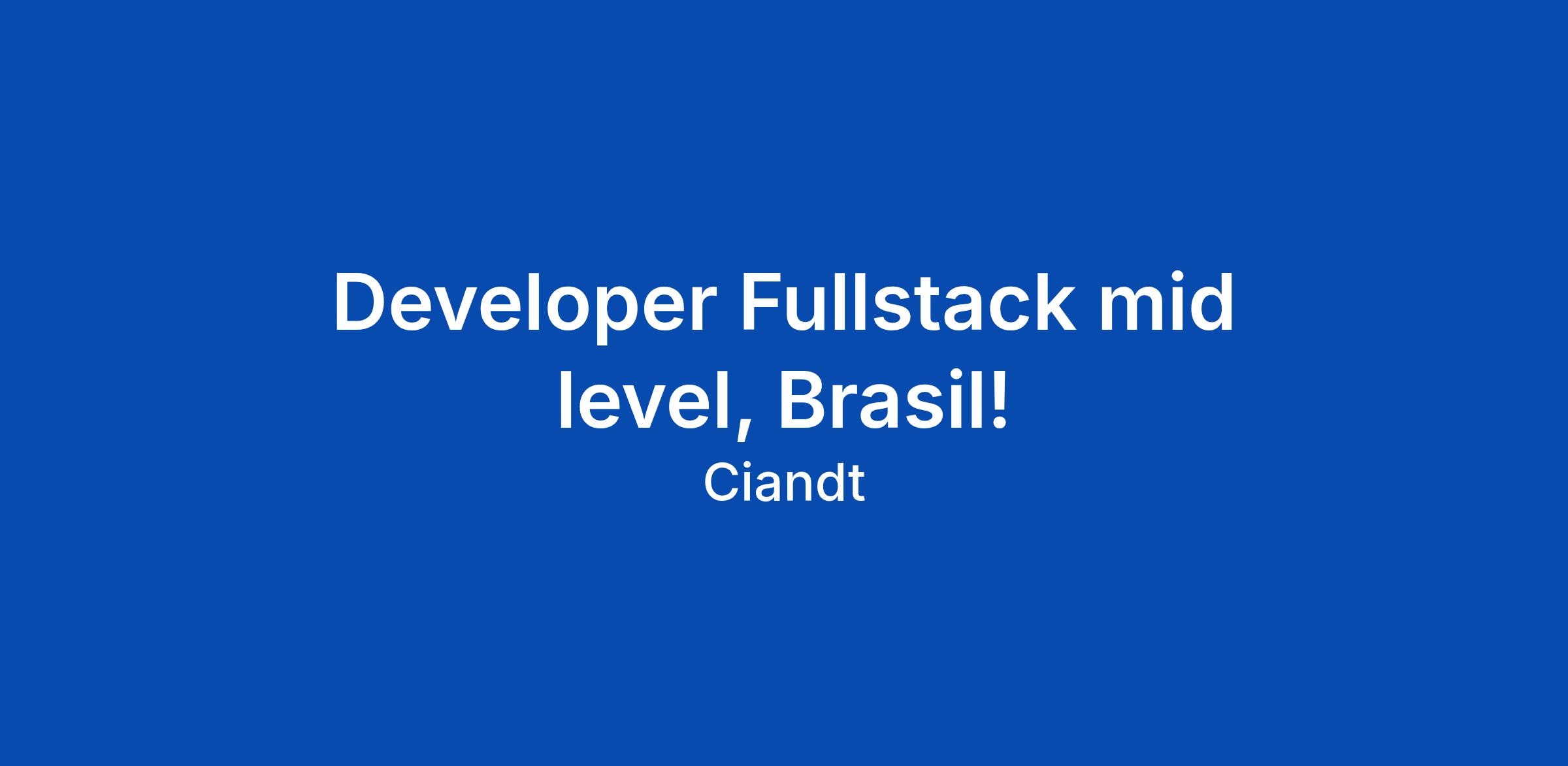 Developer Fullstack mid level, Brasil!