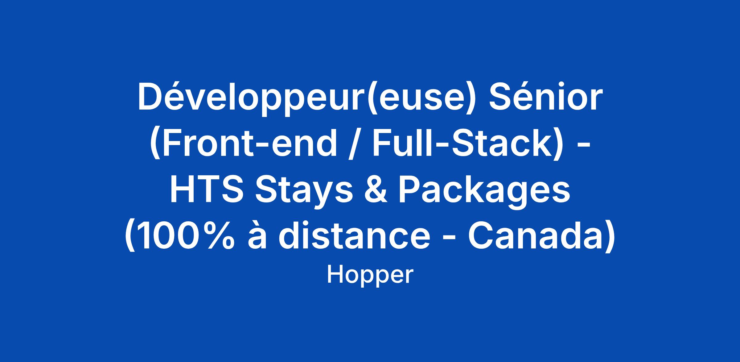 Développeur(euse) Sénior (Front-end / Full-Stack) - HTS Stays & Packages (100% à distance - Canada)