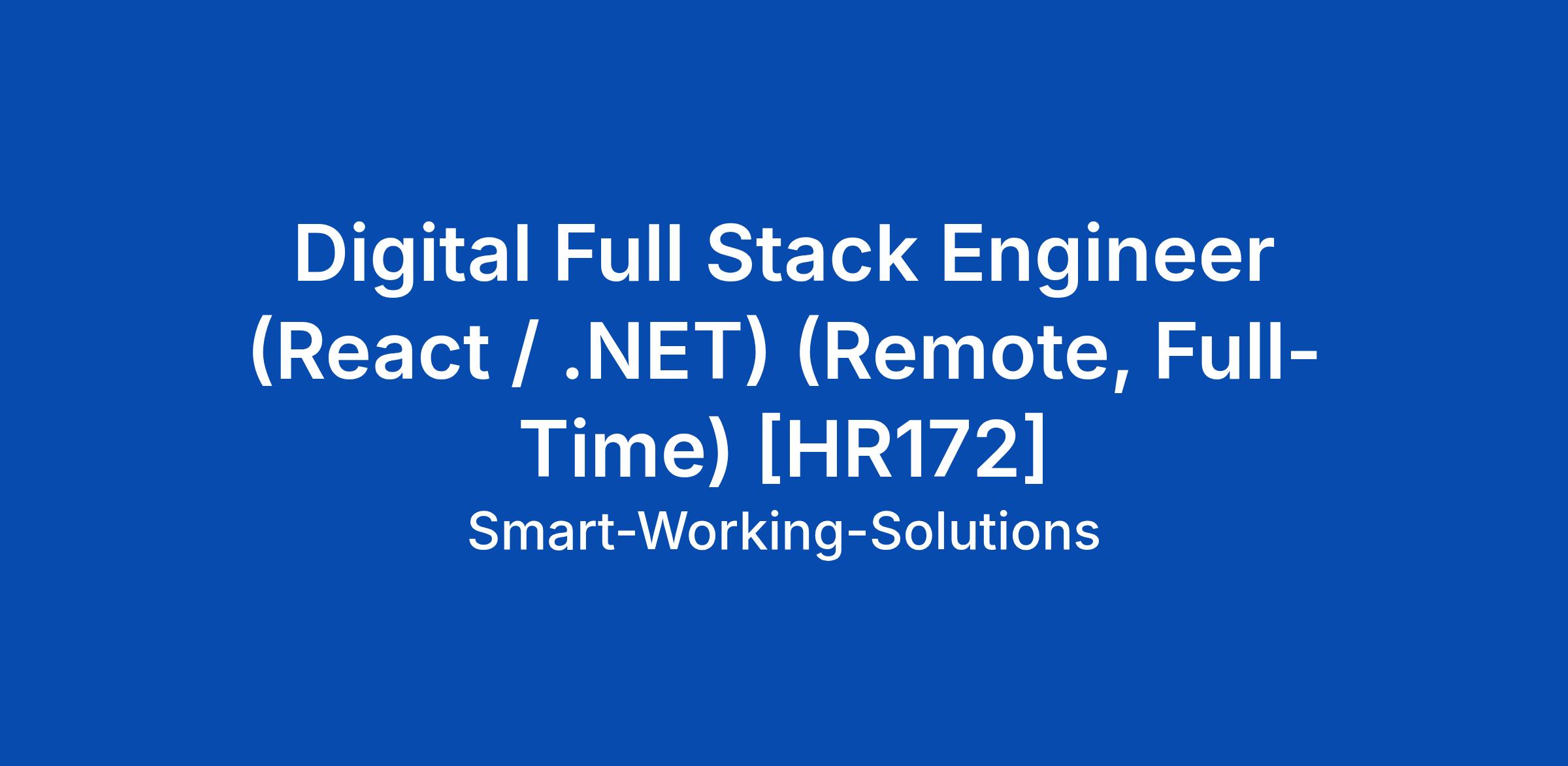 Digital Full Stack Engineer (React / .NET) (Remote, Full-Time) [HR172]