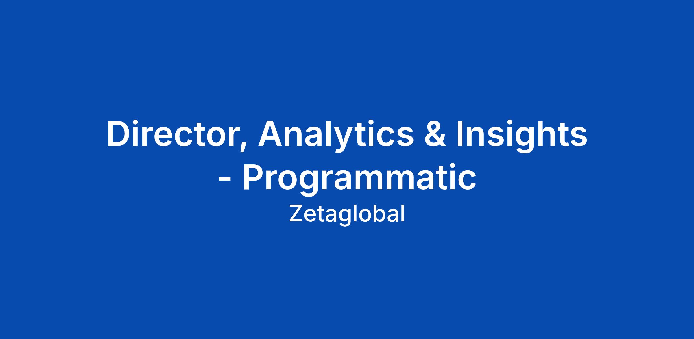 The Programmatic Analytics and Strategy team at Zeta Global provide actionable insights to both e... Click Apply to read the full job description.
