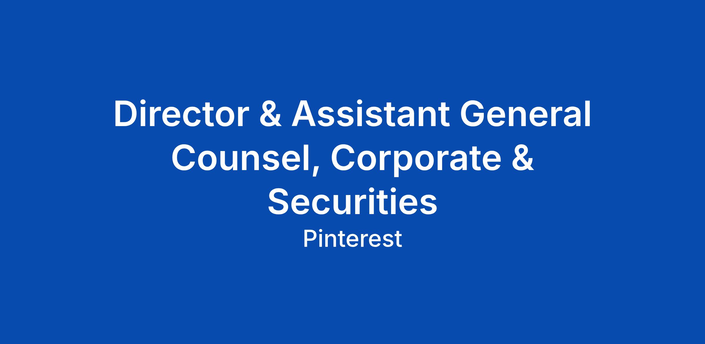 Director & Assistant General Counsel, Corporate & Securities