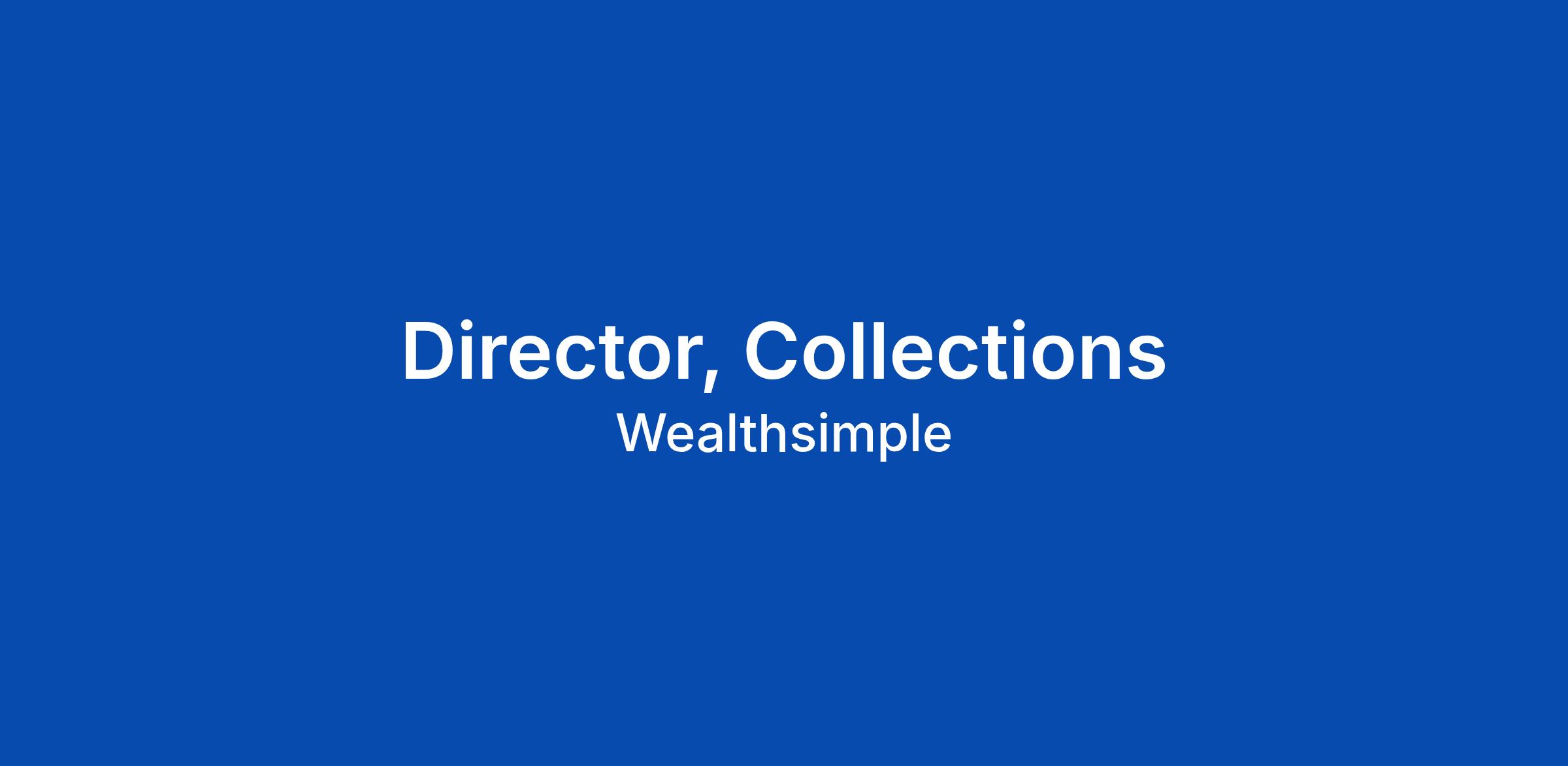 BUILD SOMETHING PEOPLE LOVE Wealthsimple's mission is to help everyone achieve financial freedom β by making financial services simple, transparent, and low-cost. We're Canada's largest fintech, trusted by over 3 million clients with more than $100 billion in assets. We move fast, we own our work, and we care deeply about the people using our products. If that sounds like you, keep reading. We're proud of what we've built β and we're just getting started. Read our Culture Manual https://www.wealthsimple.com/en-ca/culture and learn more about how we work https://www.wealthsimple.com/en-ca/careers. Wealthsimple is building its lending business. Credit cards are scaling, personal lines of credit and margin lending are expanding, and with that growth comes a collections function that needs to be built with the same rigor and ambition we bring to everything else. This role exists because collections is no longer a back-office afterthought. It's a high-stakes, client-facing operation that directly impacts credit losses, client trust, and regulatory standing. As Director of Collections Operations, you'll own the entire collections lifecycle, from pre-delinquency interventions through earl