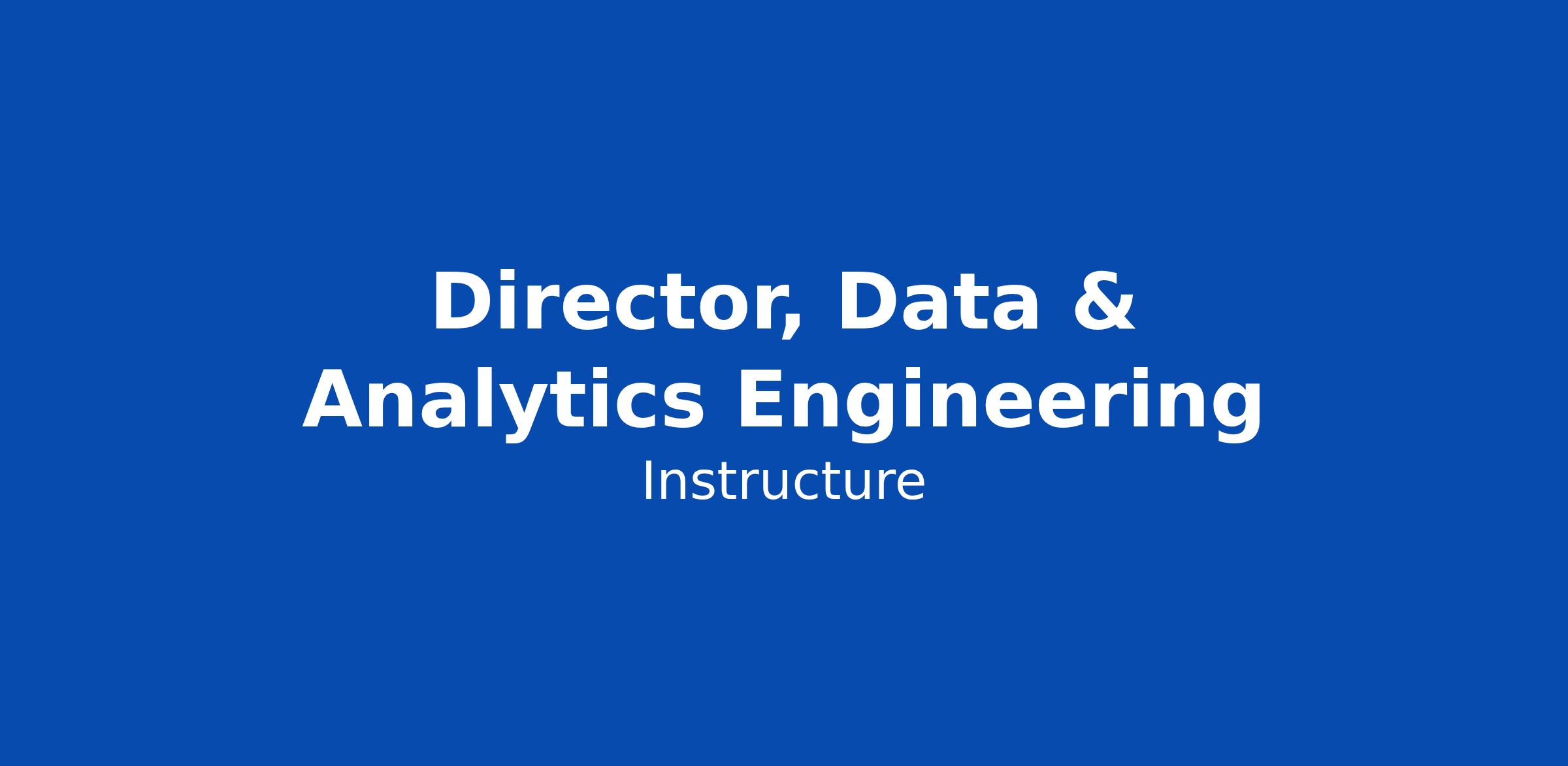 At Instructure, we believe in the power of people to grow and succeed throughout their lives. Our goal is to amplify that power by creating intuitive products that simplify learning and personal development, facilitate meaningful relationships, and inspire people to go further in their education and careers. We do this by giving smart, creative, passionate people opportunities to create awesome. And that's where you come in: DIRECTOR, DATA & ANALYTICS ENGINEERING Location: Remote Department: Engineering Level: Senior Leadership Employment Type: Full-time AI-Forward Role ABOUT THE ROLE We are seeking a Director of Data & Analytics Engineering to lead our data platform teams and power decision-making across the company. In this senior leadership position, you will own and evolve our end-to-end data platformβfrom ingestion and transformation to analytics layers that business teams rely on daily. Youβll oversee Data Engineering (infrastructure, pipelines, reliability) and Analytics Engineering (data models, metrics, self-serve tooling), while championing an AI-first approach to the way we build, operate, and innovate. FOUR PILLARS OF THIS ROLE - Platform Leadership: Own the architectur