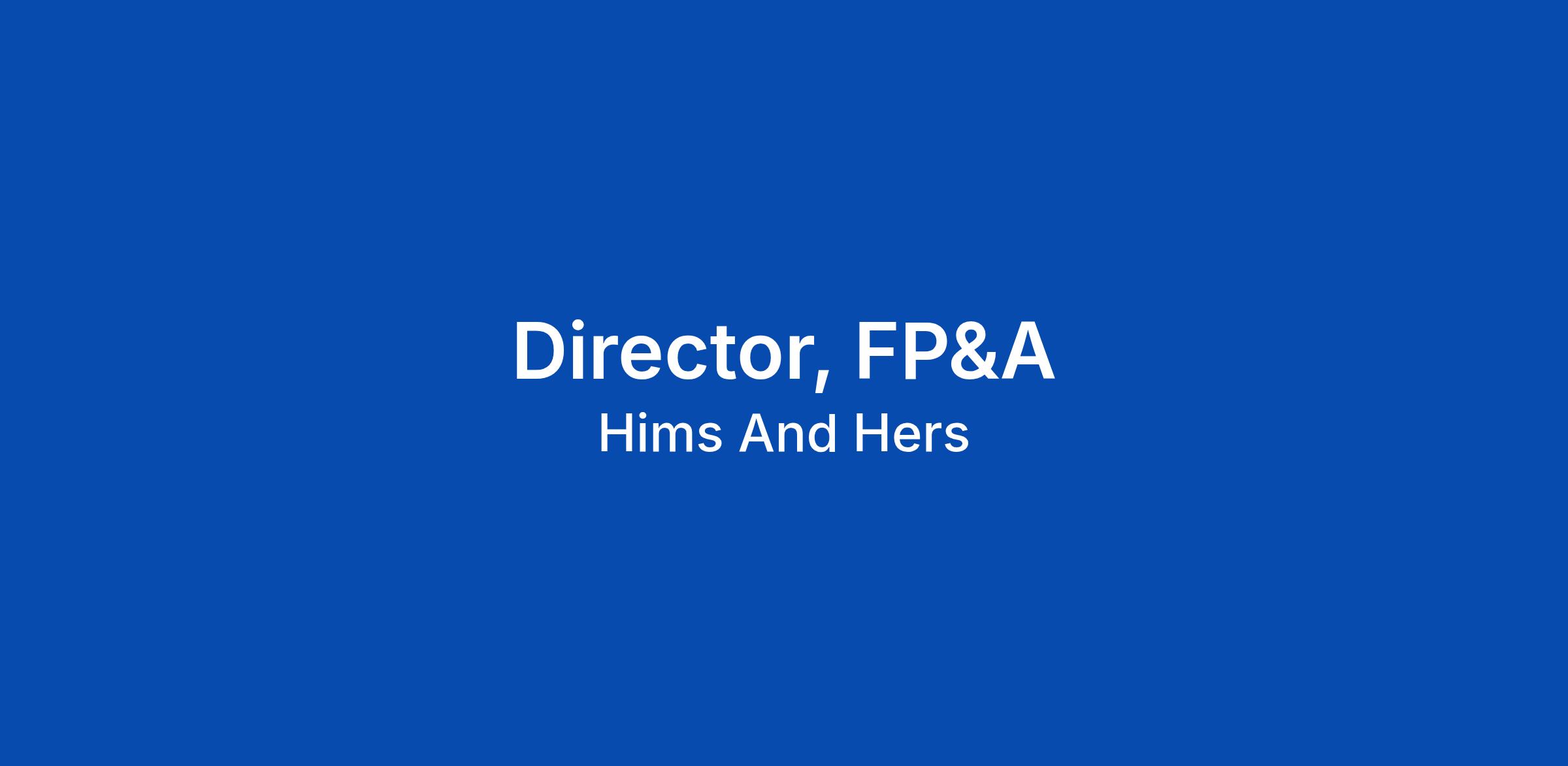 Hims & Hers is the leading health and wellness platform, on a mission to help the world feel great through the power of better health. We are redefining healthcare by putting the customer first and delivering access to care that is affordable, accessible, and personal, from diagnosis to treatment to delivery. No two people are the same, so we provide access to personalized care designed for results. By normalizing health & wellness challenges and innovating on their solutions, weβre making better health outcomes easier to achieve. Hims & Hers is a public company, traded on the NYSE under the ticker symbol βHIMS.β To learn more about the brand and offerings, you can visit hims.com/about http://hims.com/about and hims.com/how-it-works http://hims.com/how-it-works . For information on the companyβs outstanding benefits, culture, and its talent-first flexible/remote work approach, see below and visit www.hims.com/careers-professionals http://www.hims.com/careers-professionals. ABOUT THE ROLE: Hims & Hers is looking for an exceptional Director, FP&A to join our FP&A organization. Reporting to the VP of FP&A, you will lead our planning processes, shape our capital allocation strategy and... Click Apply to read the full job description.