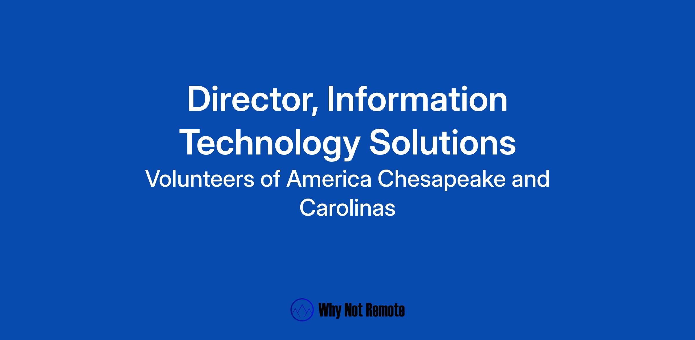 The Director of IT Solutions Delivery at Volunteers of America Chesapeake & Carolinas (VOACC) provides leadership in delivering innovative, secure, and scalable technology solutions that align with the organization’s Vision 2030. This leader combines strategic thinking with tactical execution, focusing on transformational technologies that improve whole-person care, enhance the experience of those served, and boost organizational performance across housing, health, and human services.