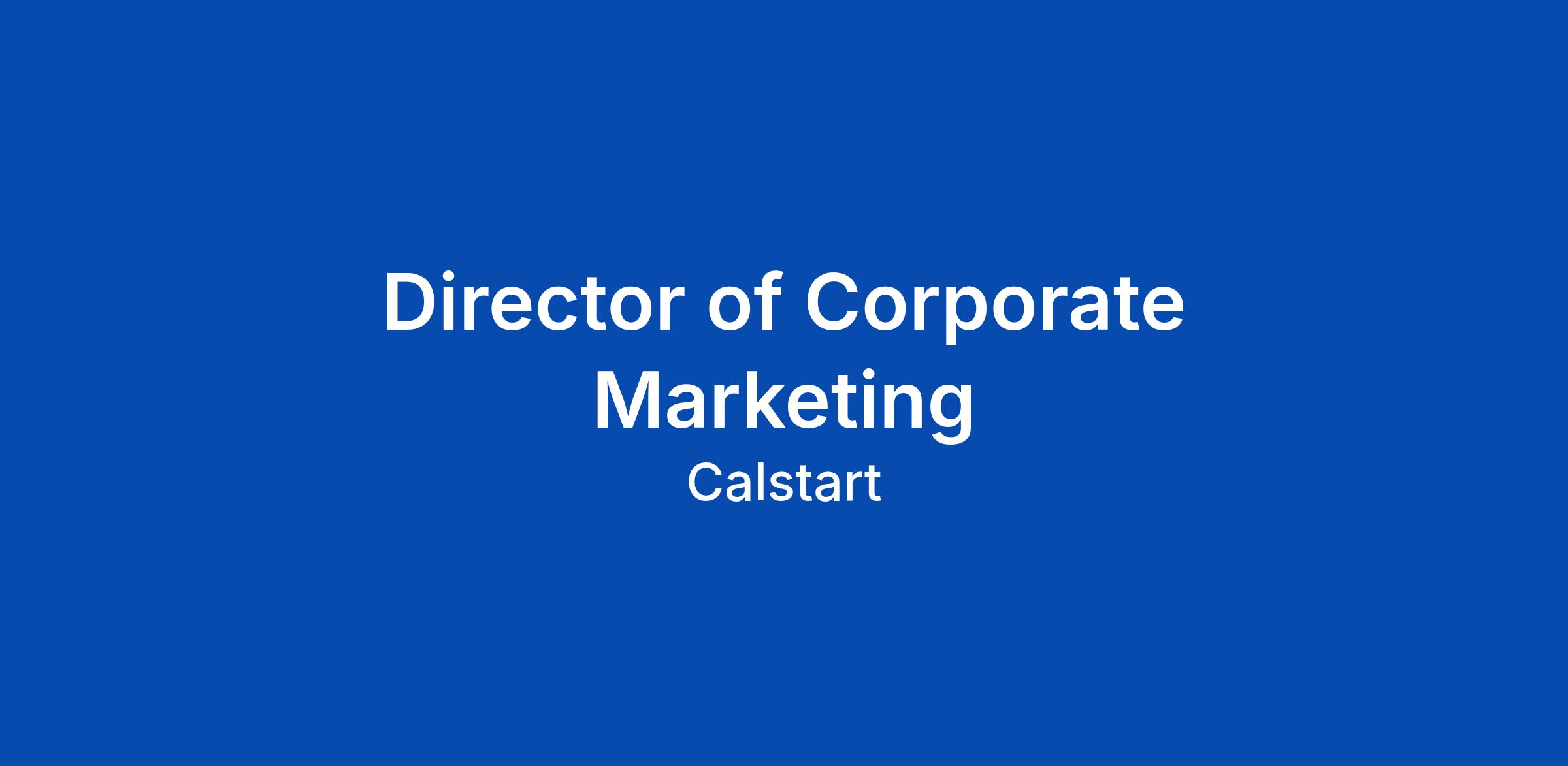 Please be aware of recruiting scams! All legitimate communication from our recruitment team will come from an official calstart.org email address via email, we will not text you about a role you have not applied to or shown interest in. We will not perform any interviews via text or Zoom chat. CALSTART does not ask for any fees or personal information such as social security numbers or bank details during the recruitment process. About Us: CALSTART is a mission-driven industry organization focused on transportation decarbonization and clean air for all. For over 30 years, itβs been CALSTARTβs mission to develop, assess, and implement large-scale, zero-emission transportation solutions to mitigate climate change and support economic growth. CALSTART works with businesses, organizations, governments, and communities to create real-life impact toward clean air and equitable access to clean transportation for all. CALSTART provides scientific, technical and policy support for regulatory development and clean technology and infrastructure acceleration. About the Role: We are seeking a strategic, hands-on Director of Corporate Marketing who can shape and tell our story with impact, trans... Click Apply to read the full job description.