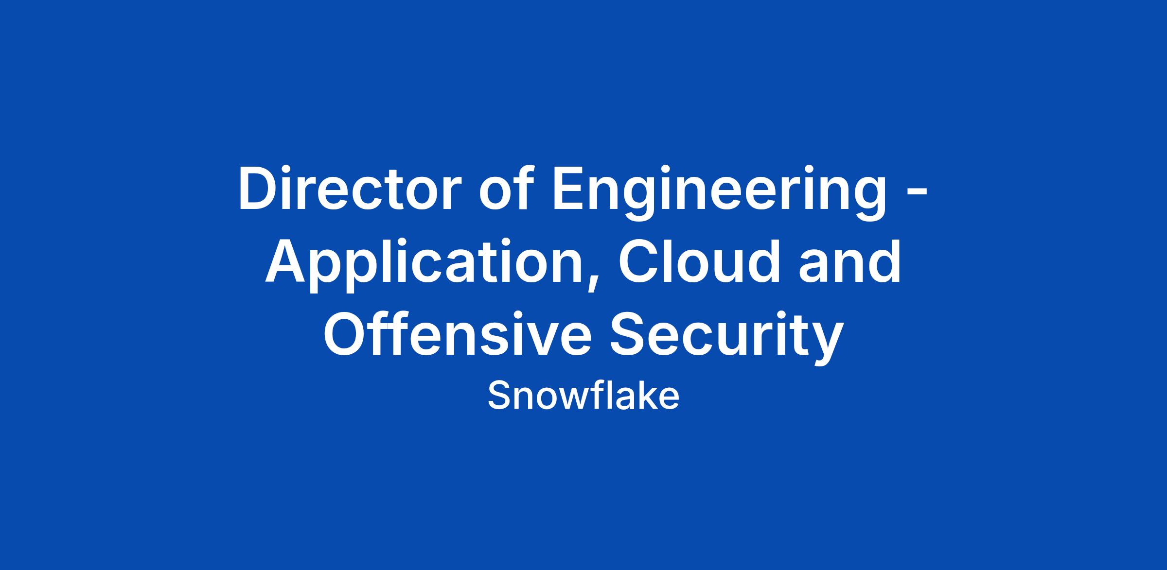 At Snowflake, we are powering the era of the agentic enterprise. To usher in this new era, we seek AI-native thinkers across every function who are energized by the opportunity to reinvent how they work. You donβt just use tools; you possess an innate curiosity, treating AI as a high-trust collaborator that is core to how you solve problems and accelerate your impact. We look for low-ego individuals who thrive in dynamic and fast-moving environments and move with an experimental mindset β who rapidly test emerging capabilities to discover simpler, more powerful ways to deliver results. At Snowflake, your role isn't just to execute a function, but to help redefine the future of how work gets done. We are hiring a Director of Engineering for the Application, Cloud and Offensive security teams in the Security Engineering organization. Snowflake is the AI Data Cloud powering enterprises worldwide to store, process, and build intelligent applications on their most sensitive data. As AI has become more deeply embedded in what Snowflake and its customers do, the threat landscape has evolved at the same pace. This Director role was created directly in response to that convergence: a wide m... Click Apply to read the full job description.