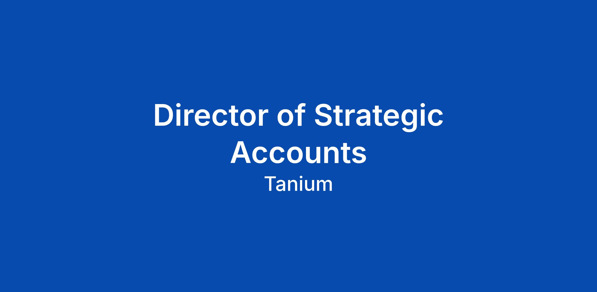 As a Director of Strategic Accounts (DSA) on the Tanium field sales team, you will be responsible for generating opportunities to position the Tanium... Click Apply to read the full job description.