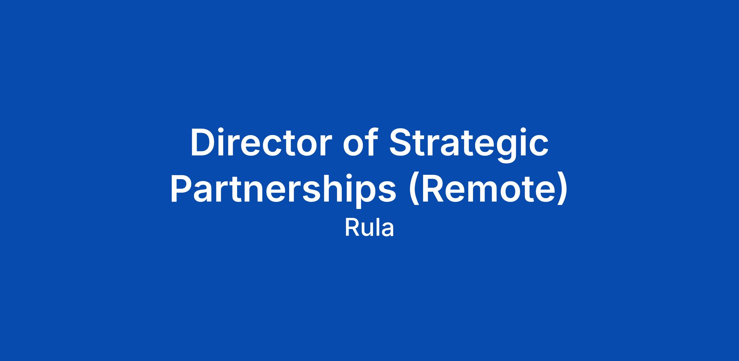 We believe that mental health is just as important as physical health. We recognize that mental health issues can be complex and multifaceted, and we are dedicated to treating the whole person, not just the symptoms. We aim to create a world where mental health is no longer stigmatized or marginalized, but rather is embraced as an integral part of one's overall well-being. We believe that by providing quality care that is both evidence-based and compassionate, we can empower individuals to take charge of their mental health and achieve their full potential. We are passionate about making a positive impact on the lives of those struggling with mental health issues and we strive to be a force for positive change in the field of mental healthcare. Rula is a remote-first company. We currently hire in most U.S. states, with the exception of Hawaii. About the Role Weβre hiring a Director of Strategic Partnerships to own and evolve our enterprise employer growth strategy, leading complex, multi-stakeholder deals with enterprise organizations. You will drive full-cycle enterprise sales while shaping how Rula wins in this segment, refining positioning, influencing cross-functional partners,