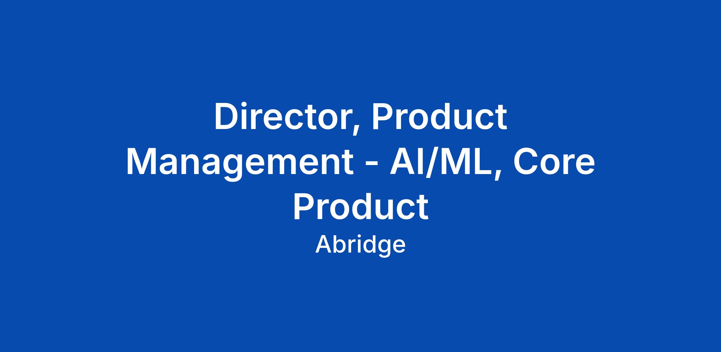 Director, Product Management - AI/ML, Core Product