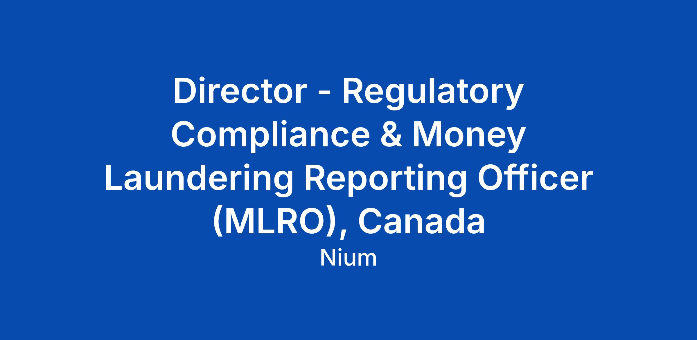 Director - Regulatory Compliance & Money Laundering Reporting Officer (MLRO), Canada