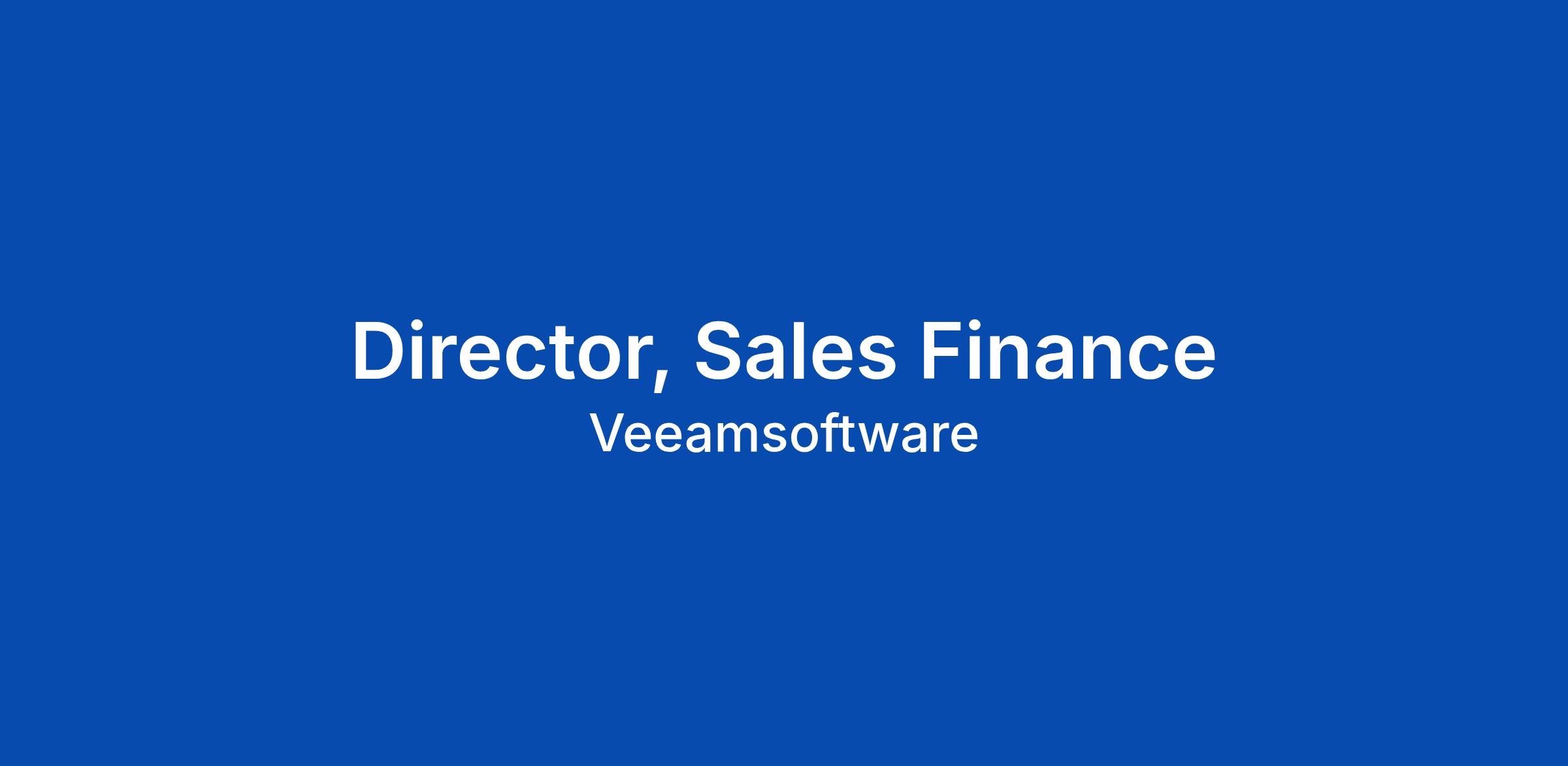 We are hiring a Director of Sales FinanceΒ (Partners & GTM)Β to serve as the finance partner to Partner Sales and Specialist Sales at Veeam. This is a highly a... Click Apply to read the full job description.