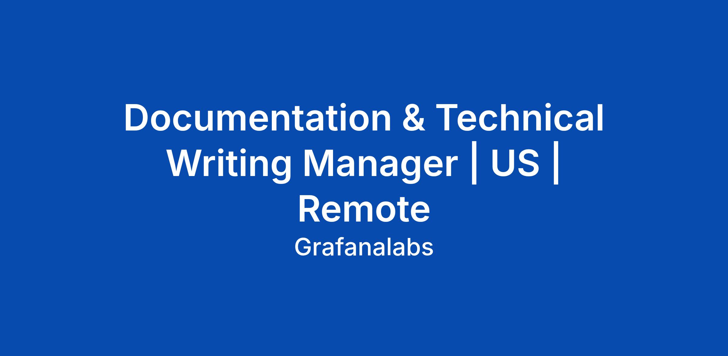 Documentation & Technical Writing Manager | US | Remote