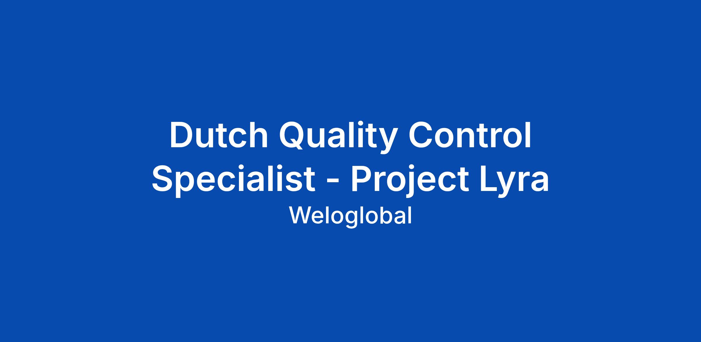Dutch Quality Control Specialist - Project Lyra