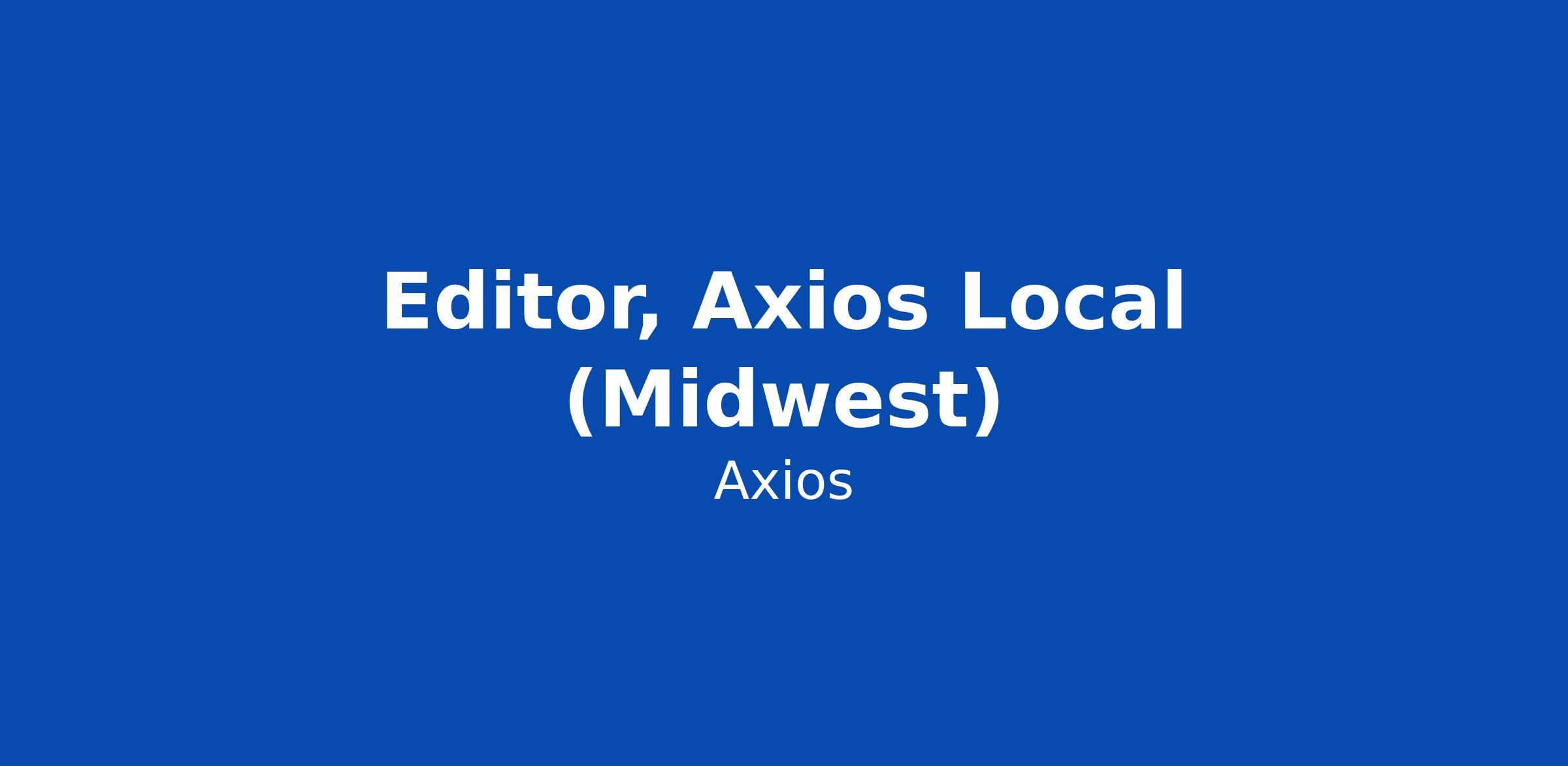 The big picture: Axios is dedicated to providing trustworthy, award-winning news in an audience-first format. Axios Local now publishes daily newsletters in 34 cities across America. We are hiring an editor to work with our teams in the Midwest region.