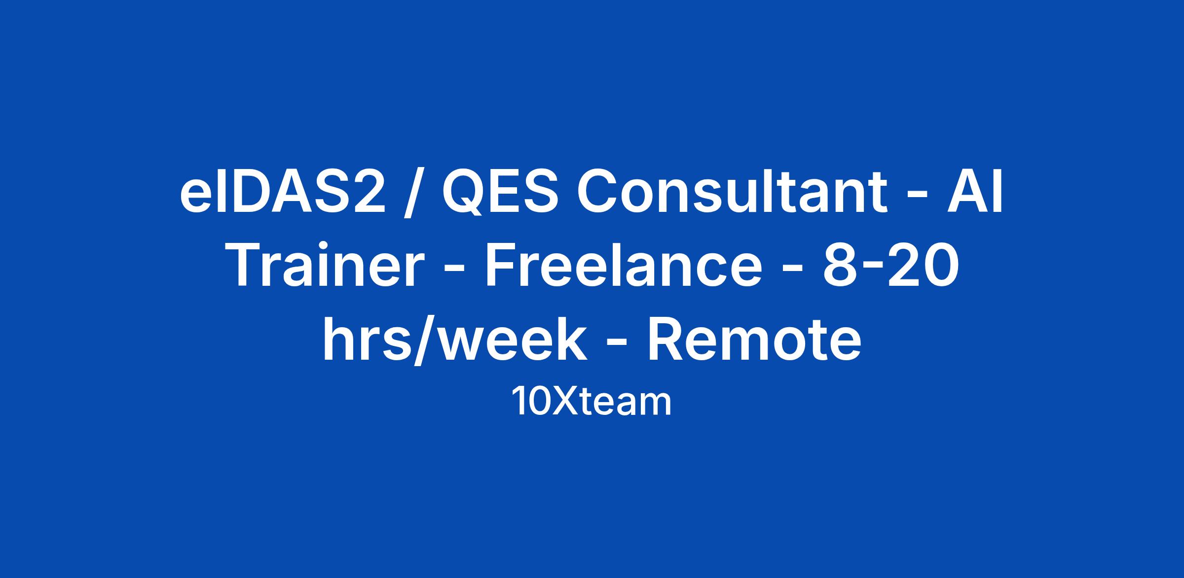 Updated: 16 April 2026 Freelance | 8β20 hrs/week | Remote (EU/UK) Are you an experienced eIDAS2 or QES consultant who can quickly identify compliance gaps and understands the practical complexities of digital identity and electronic signature regulation? Do you have 8 to 20 hours per week available alongside your main role or consulting projects? Join us in shaping how AI understands and applies eIDAS2 and QES requirements at scale. About the Role 10x.team connects expert freelancers with leading AI labs building next-generation models. We are seeking seasoned eIDAS2 and QES specialists based in the EU or UK to enhance the accuracy, depth, and practical application of AI-powered compliance systems. What You Will Do - Review and refine AI-generated outputs on topics like eIDAS2 compliance, Qualified Electronic Signatures (QES), digital trust frameworks, and secure remote identification - Evaluate AI responses for regulatory accuracy, technical realism, and practical applicability - Draft realistic compliance and digital identity scenarios informed by your own experience - Create scenario variations from different viewpoints (e.g. compliance officer, technical lead, legal adviser, or